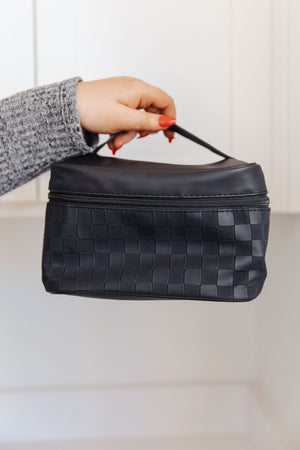 – Sold OutIntroducing our Subtly Checked Cosmetic Bags 3 Piece Set in Black – a blend of style and organization for your beauty essentials. Pieces 1 and 2 feature PVC clear cases with inside zip pouches, providing a sleek and practical solution for visibility and storage. Piece 3 adds a touch of elegance with a square bag crafted from checked black PU leather, complemented by gold accents. Elevate your travel style with this versatile and chic cosmetic bag set.