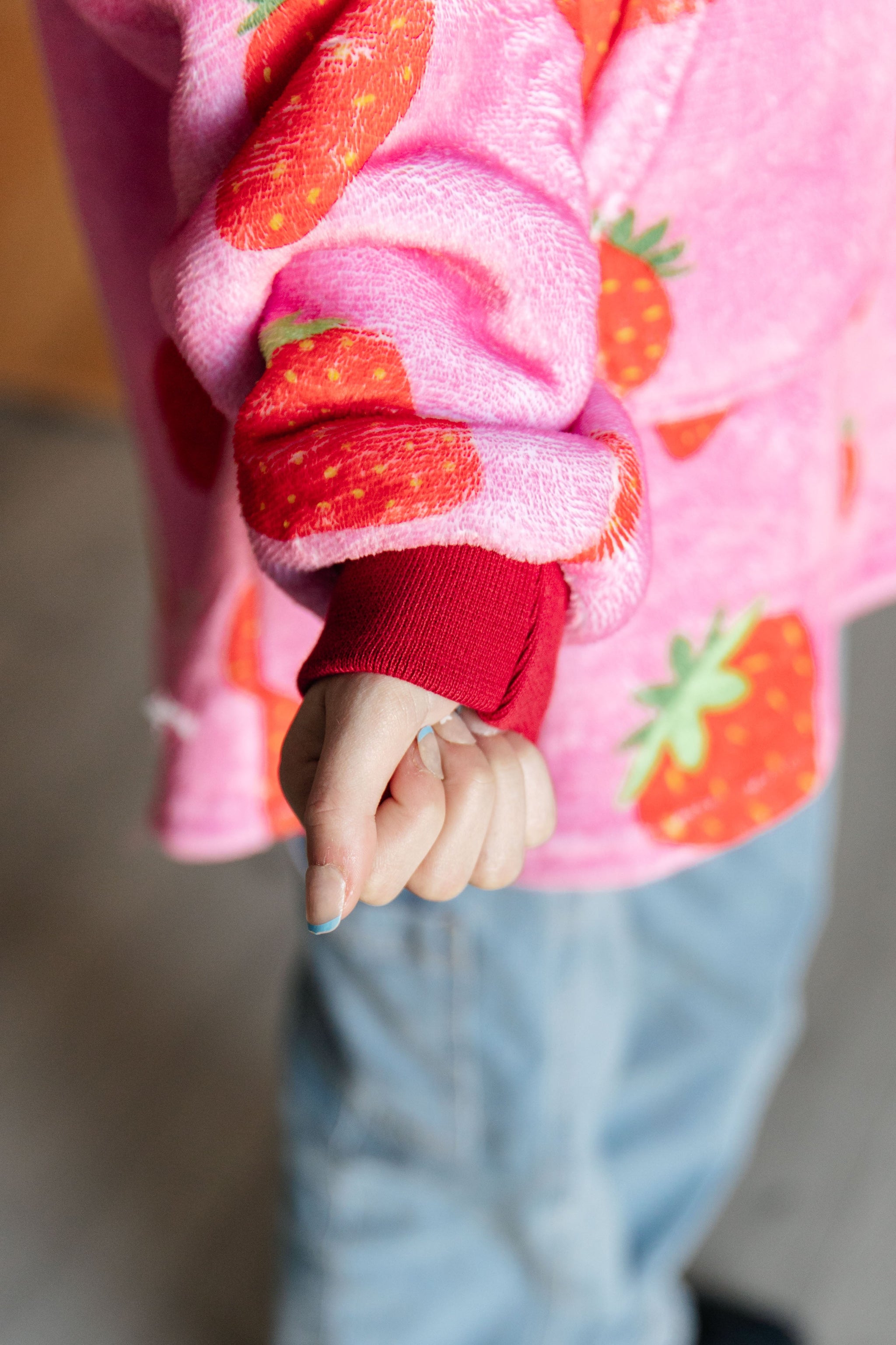 Introduce the little ones to the finer things in life with our Kids Oversized Hoodie Blanket! It's made from super soft poly velour with the coziest sherpa lining and has deep kangaroo pocket. Featuring a hooded neckline and balloon sleeves with banded, ribbed cuffs. Perfect for movie nights, errand runs, or just chilling around the house!