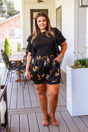 Create a look that’s wildly perfect with this Party Animal Leopard Print Satin Set! The top has dolman sleeves, a collared shirt, and satin covered buttons for an elegant, sophisticated finish. The shorts feature an easy fit and pockets for extra convenience. Unleash your inner wildcat and take your party style up a notch!