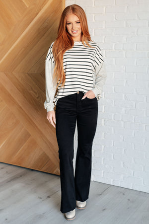 – Sold OutGet playful with our Super Clever Patchwork Striped Top in Ivory. Its micro ribbed knit provides a cozy, form-fitting feel, while the round neckline and drop shoulder add a touch of casual chic. The banded sleeve cuff gives a unique twist to a timeless design.