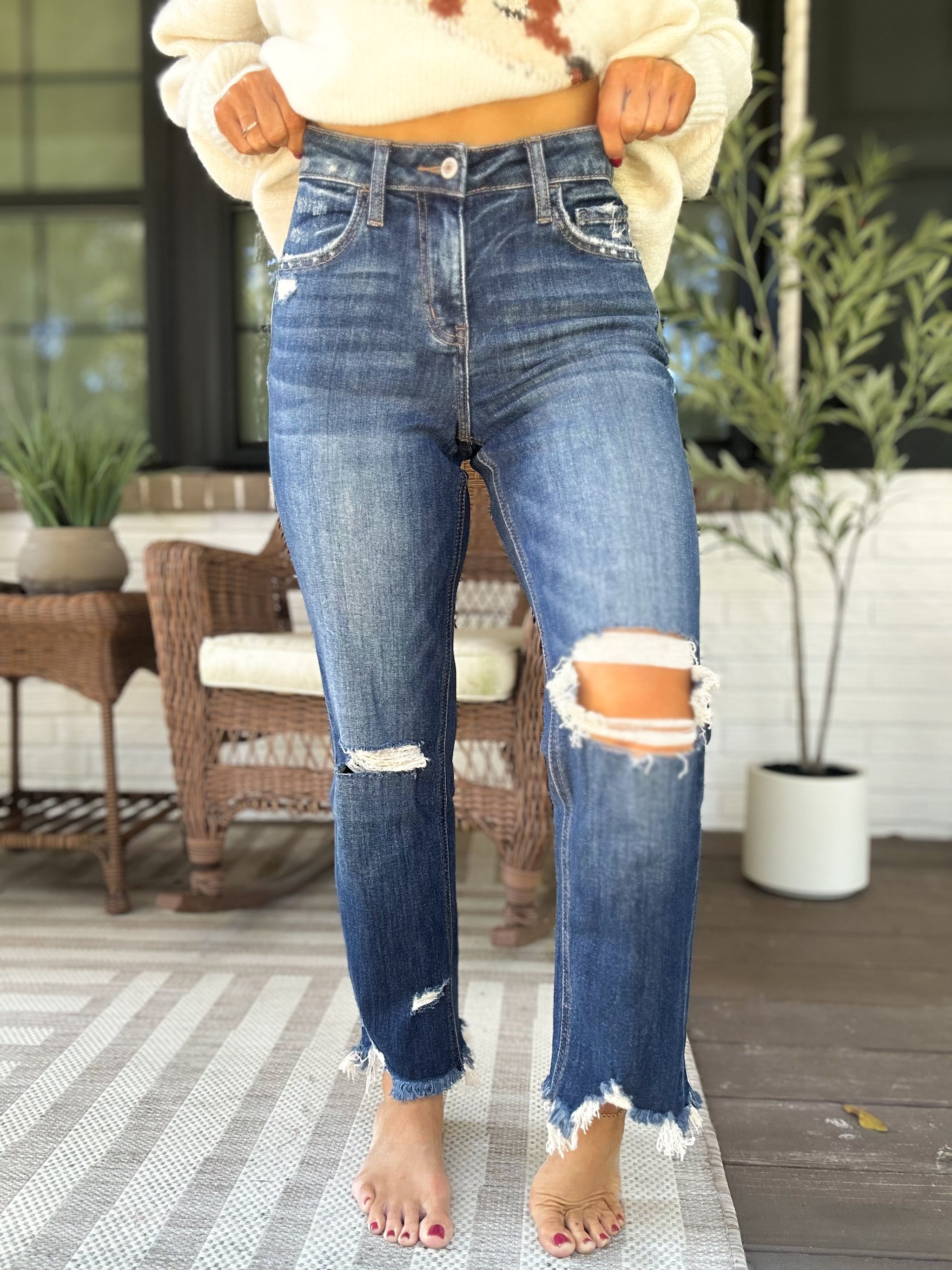 Amberlynn Dark Wash High Rise Straight Leg Jeans