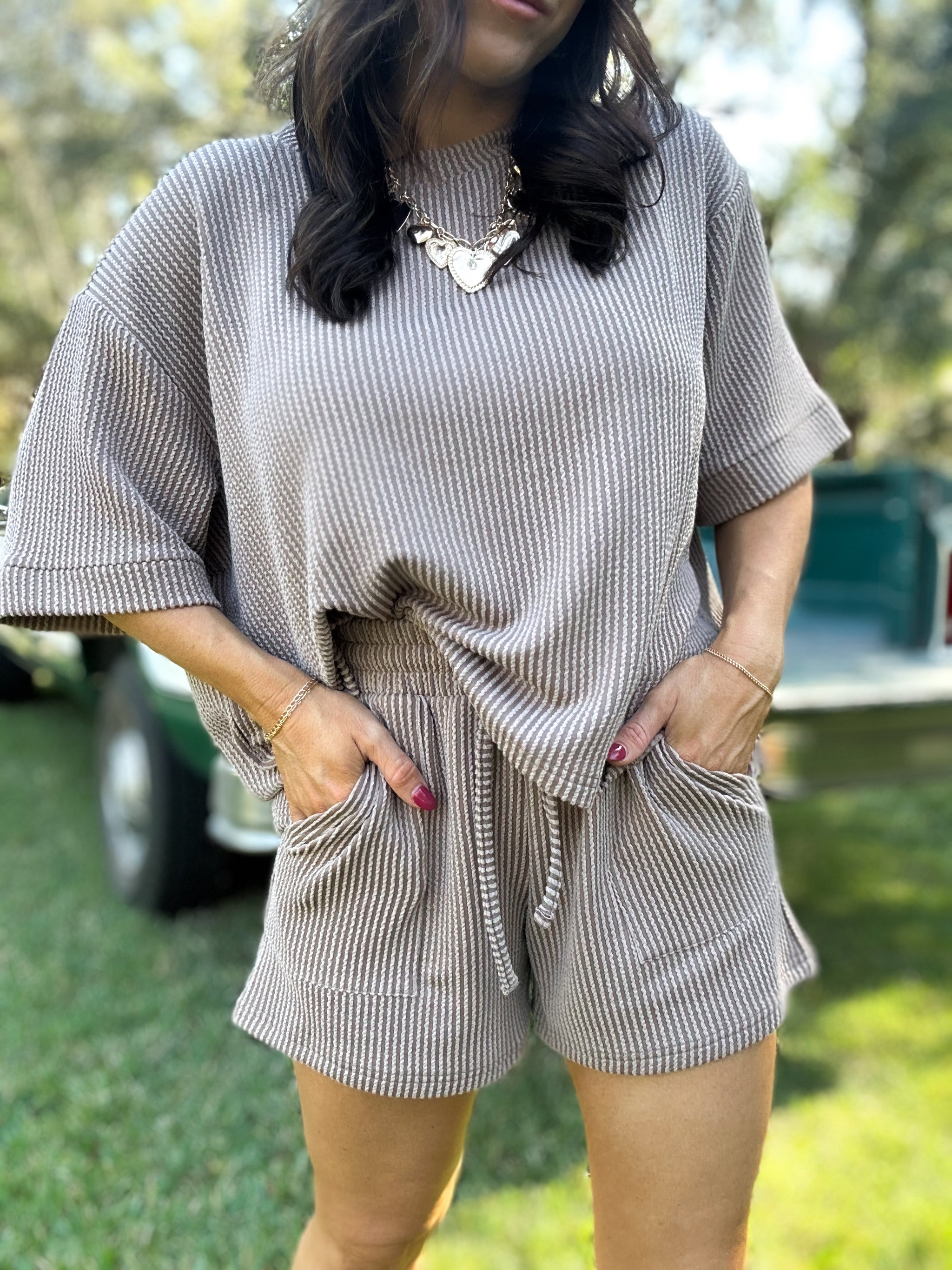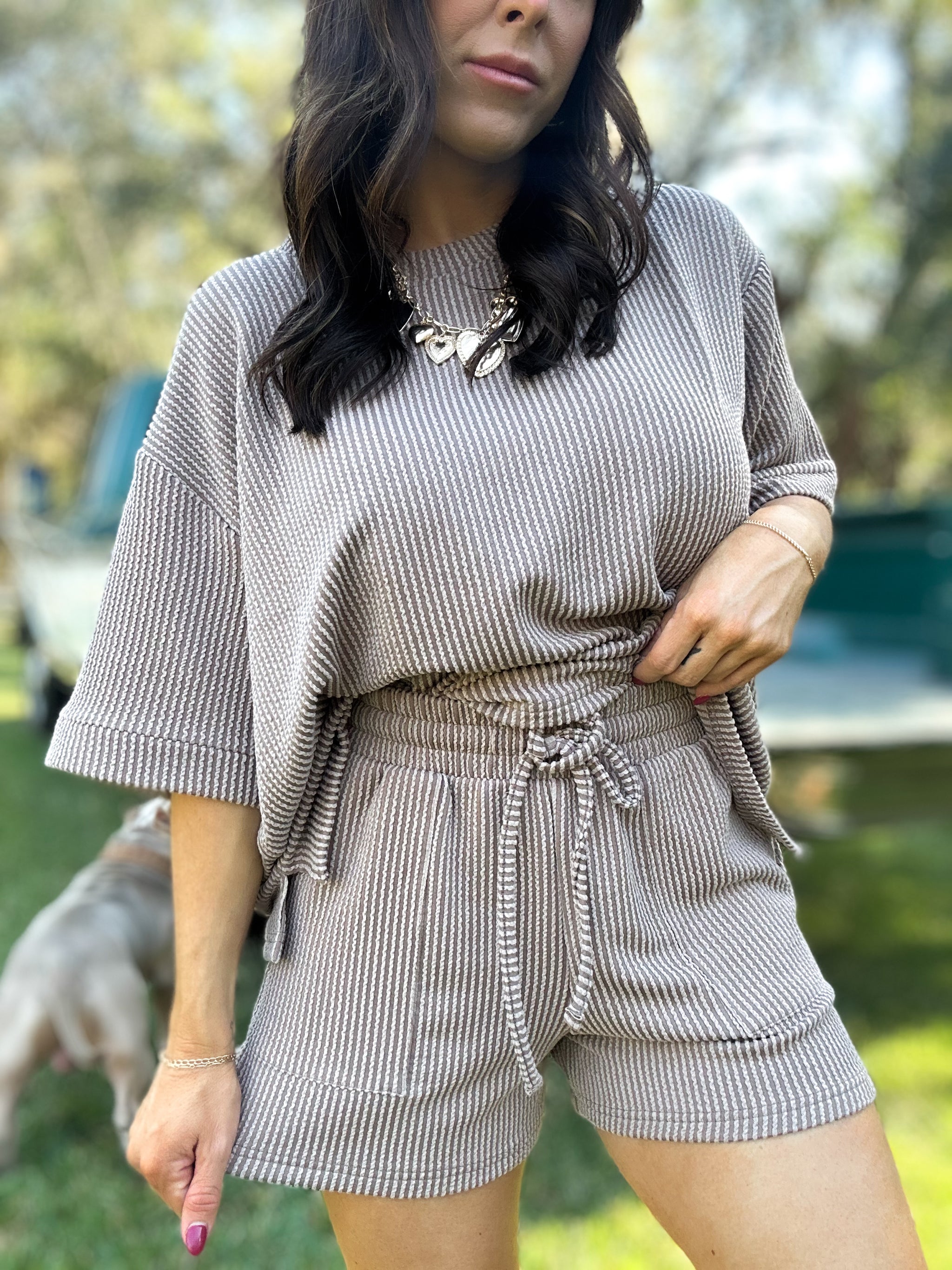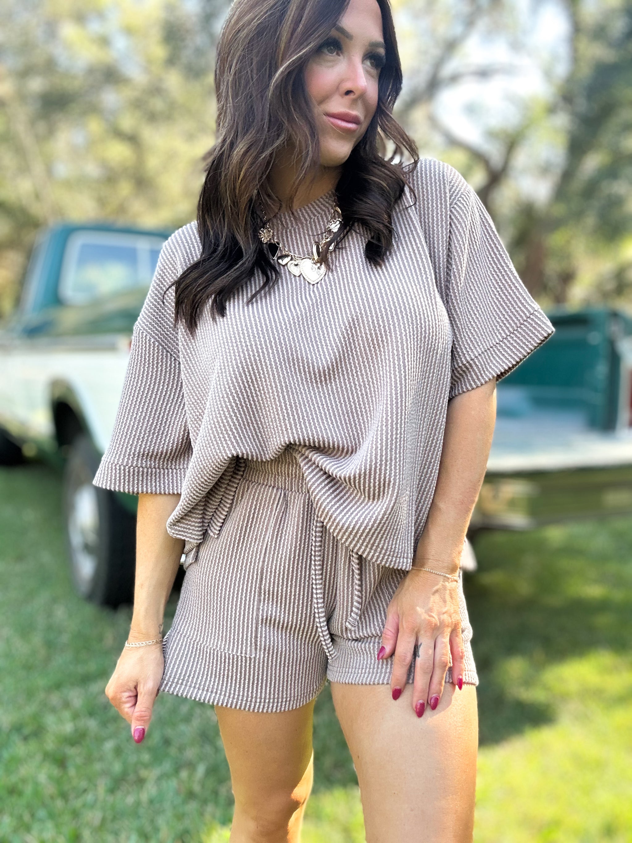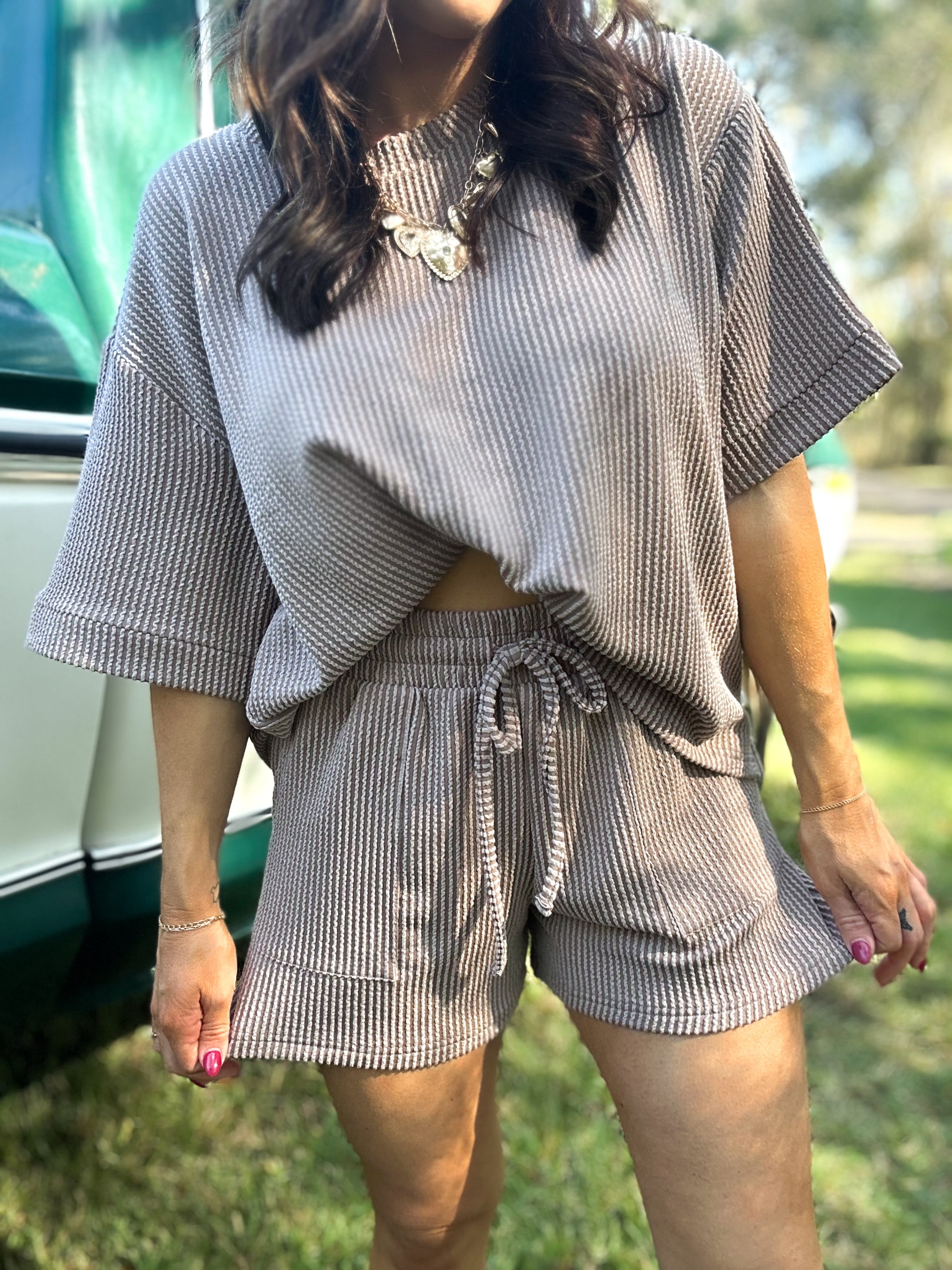 Slip into pure comfort with our Ali Ribbed Shorts—the perfect blend of cozy and cute. The textured ribbed fabric hugs you just right while keeping things breezy and breathable. Whether you're lounging at home, running errands, or catching up with friends, these shorts deliver that effortless vibe you're craving. Soft, stretchy, and oh-so-wearable, they're about to become your new go-to favorite.]