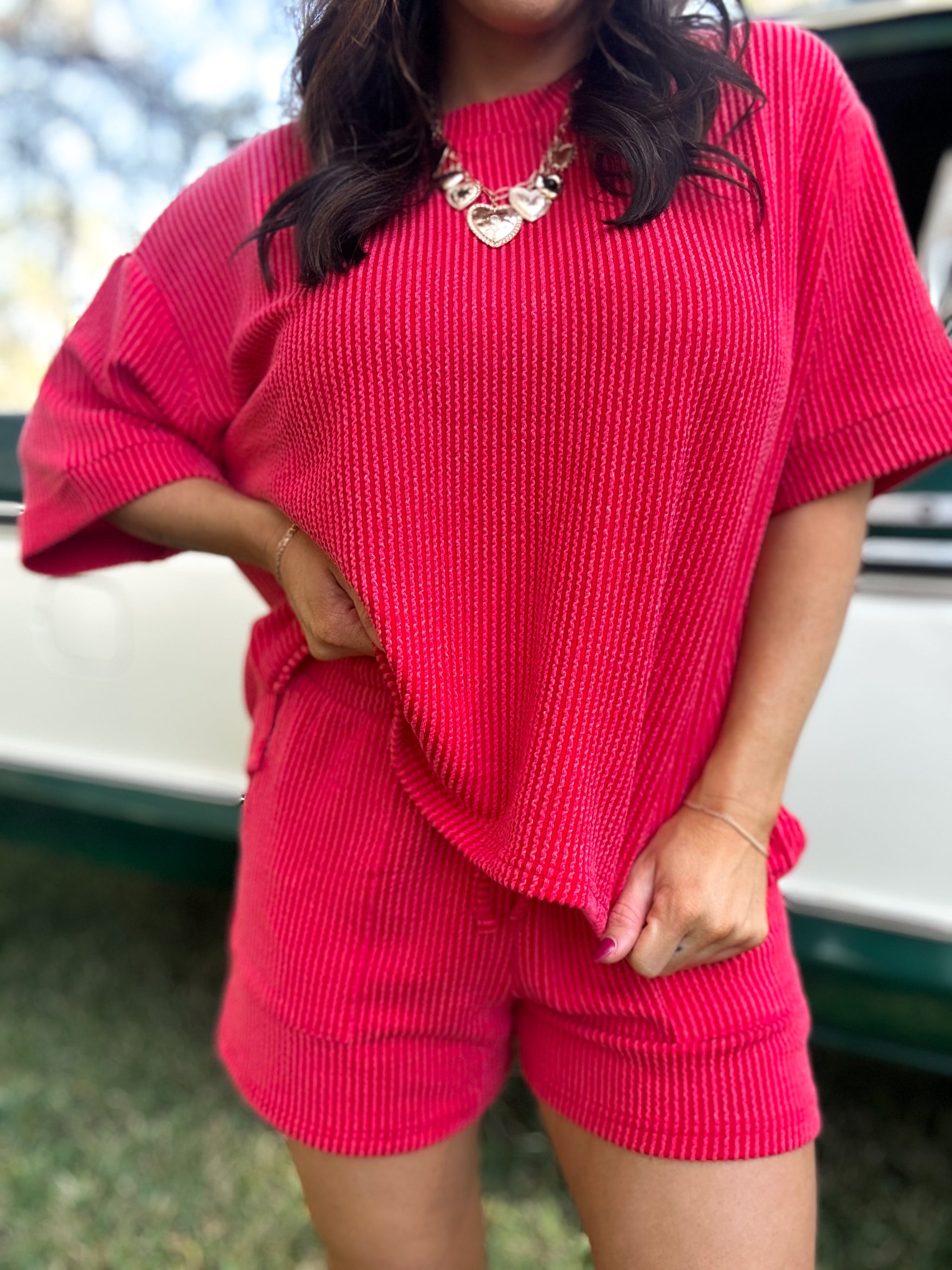 Slip into pure comfort with our Ali Ribbed Shorts—the perfect blend of cozy and cute. The textured ribbed fabric hugs you just right while keeping things breezy and breathable. Whether you're lounging at home, running errands, or catching up with friends, these shorts deliver that effortless vibe you're craving. Soft, stretchy, and oh-so-wearable, they're about to become your new go-to favorite.]