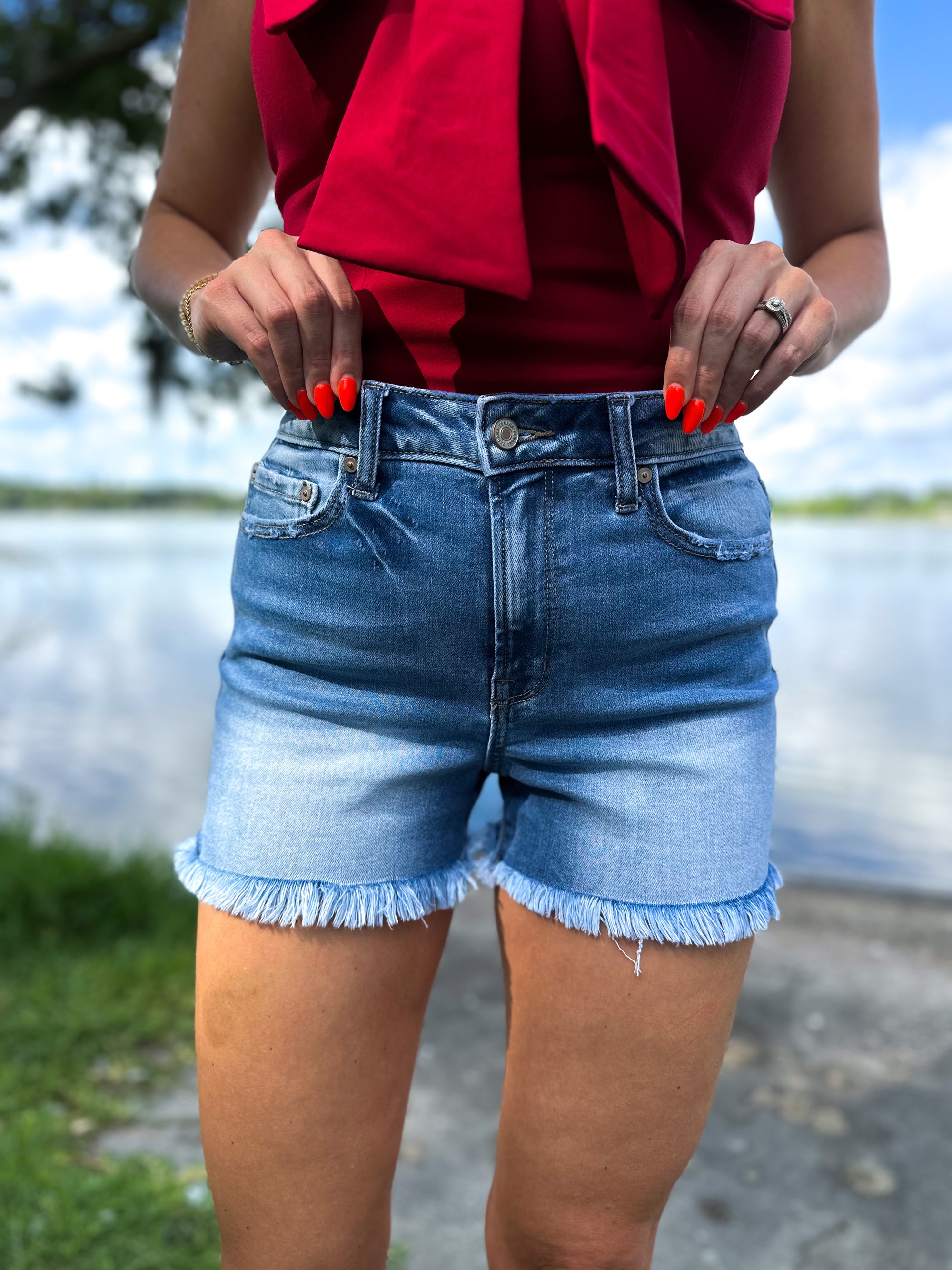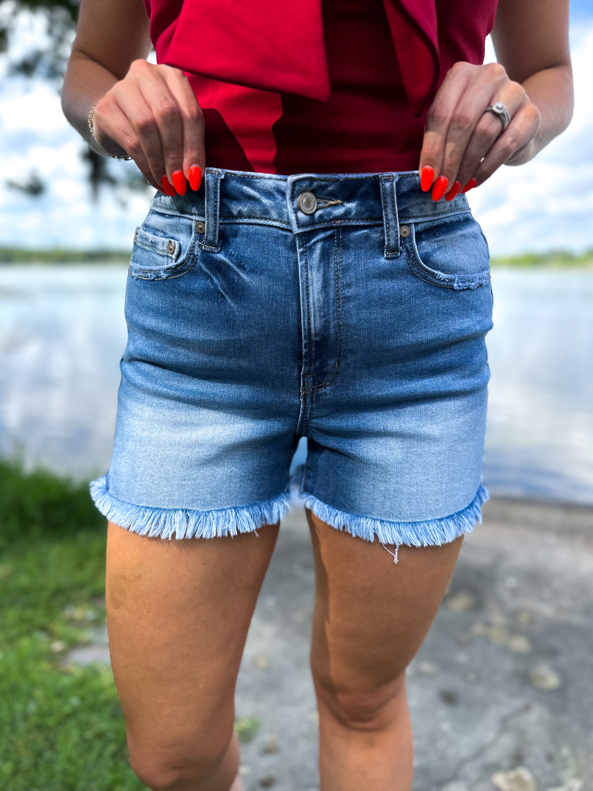 Sydney Mid Rise Acid Wash Distressed Shorts