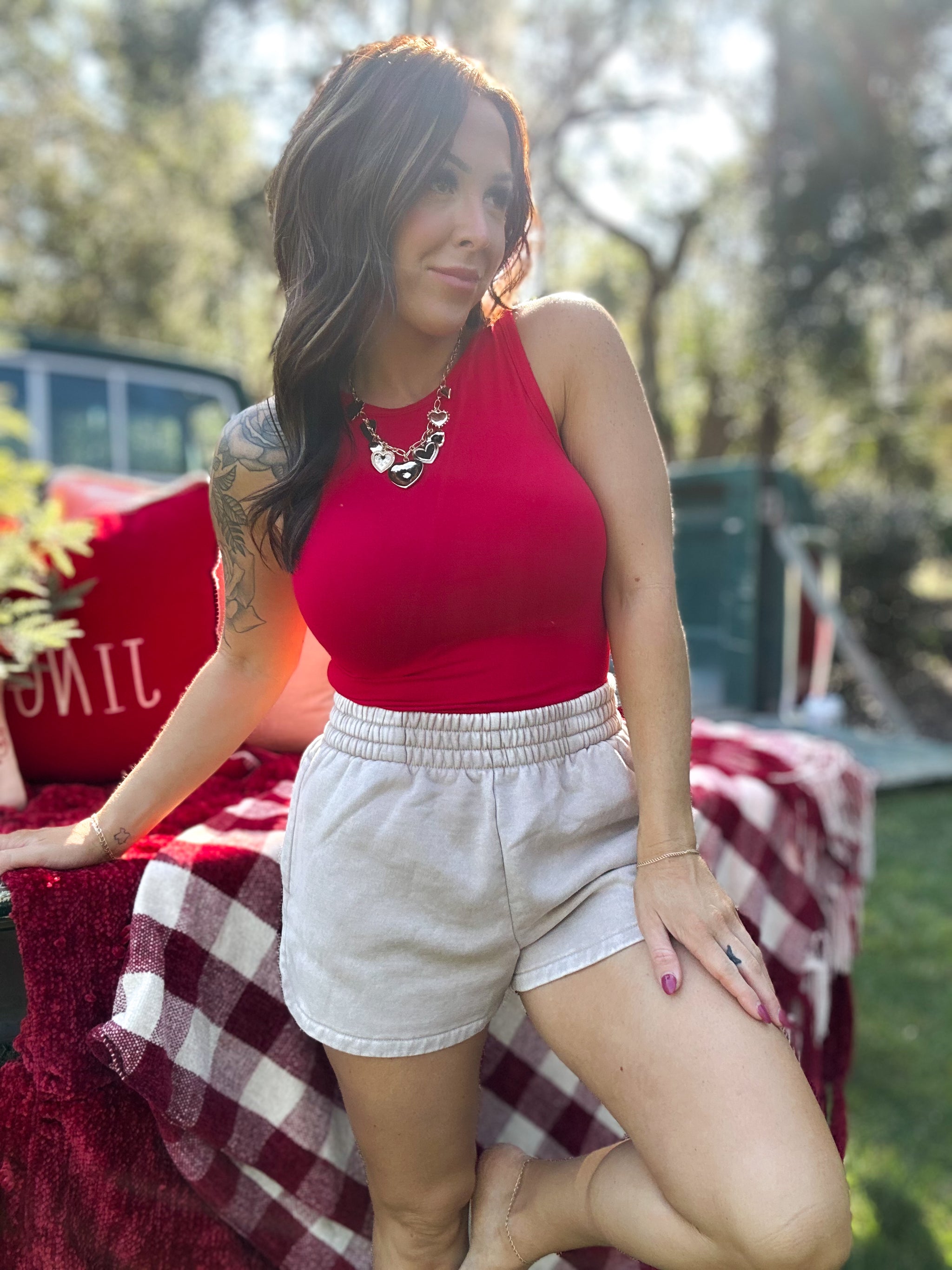 Meet the Brandi Bodysuit—your new go-to for effortless style! This sleek sleeveless design features a chic boat neck that flatters every frame, while the fitted bodysuit silhouette keeps you looking polished from morning to night. Whether you're dressing it up with tailored trousers or keeping it casual with your favorite jeans, this versatile piece transitions seamlessly through your week. The clean lines and timeless cut make it a wardrobe essential that pairs with literally everything. Grab yours before it's gone!