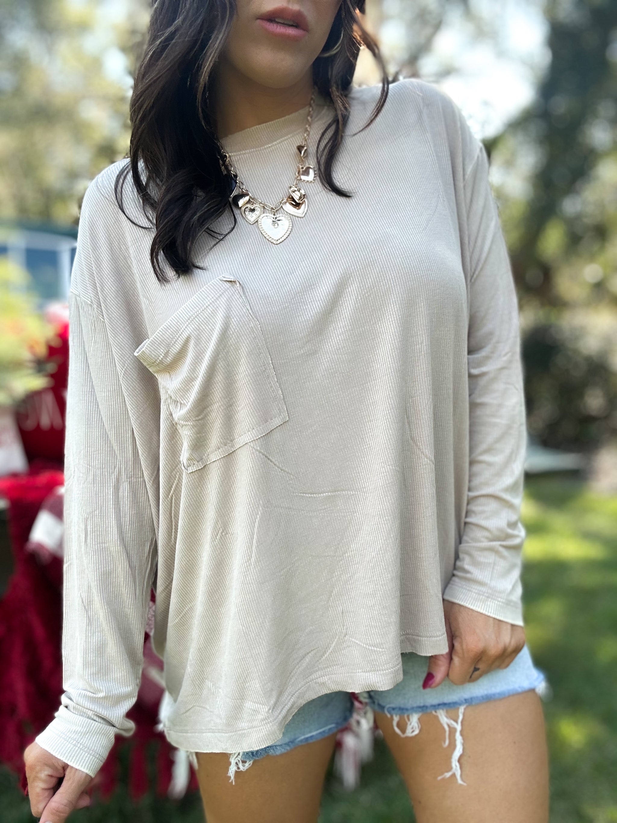 DOORBUSTER - Remi Ribbed Dolman Top - Ash Mocha