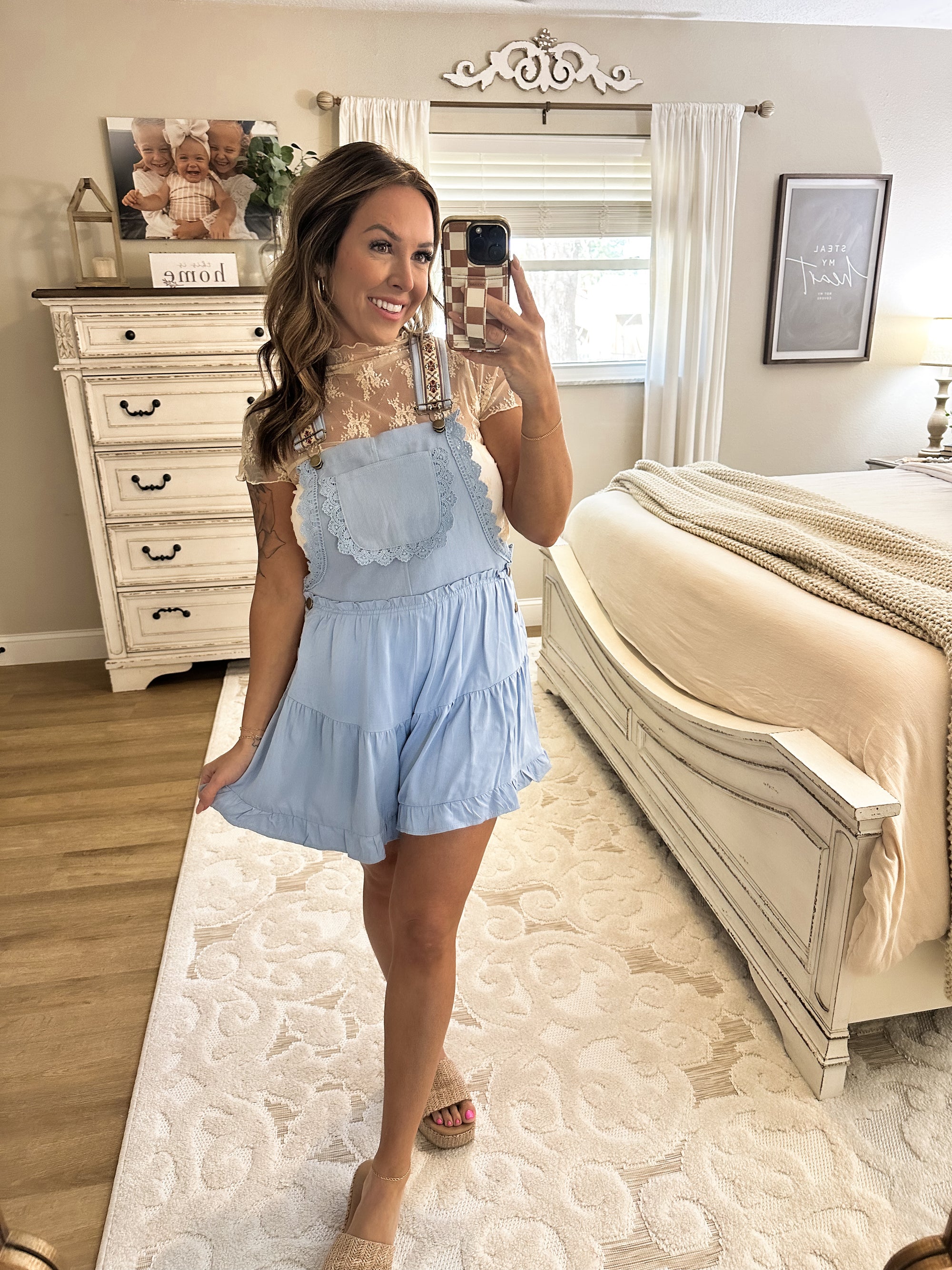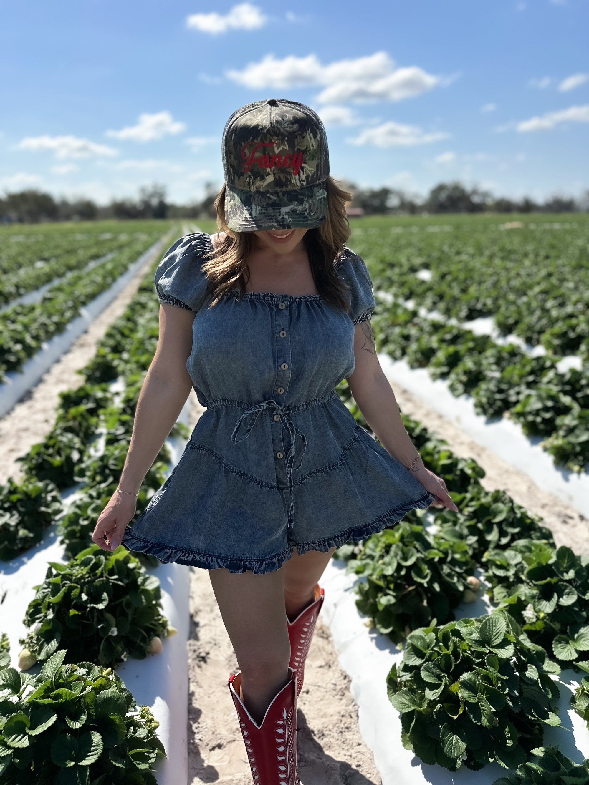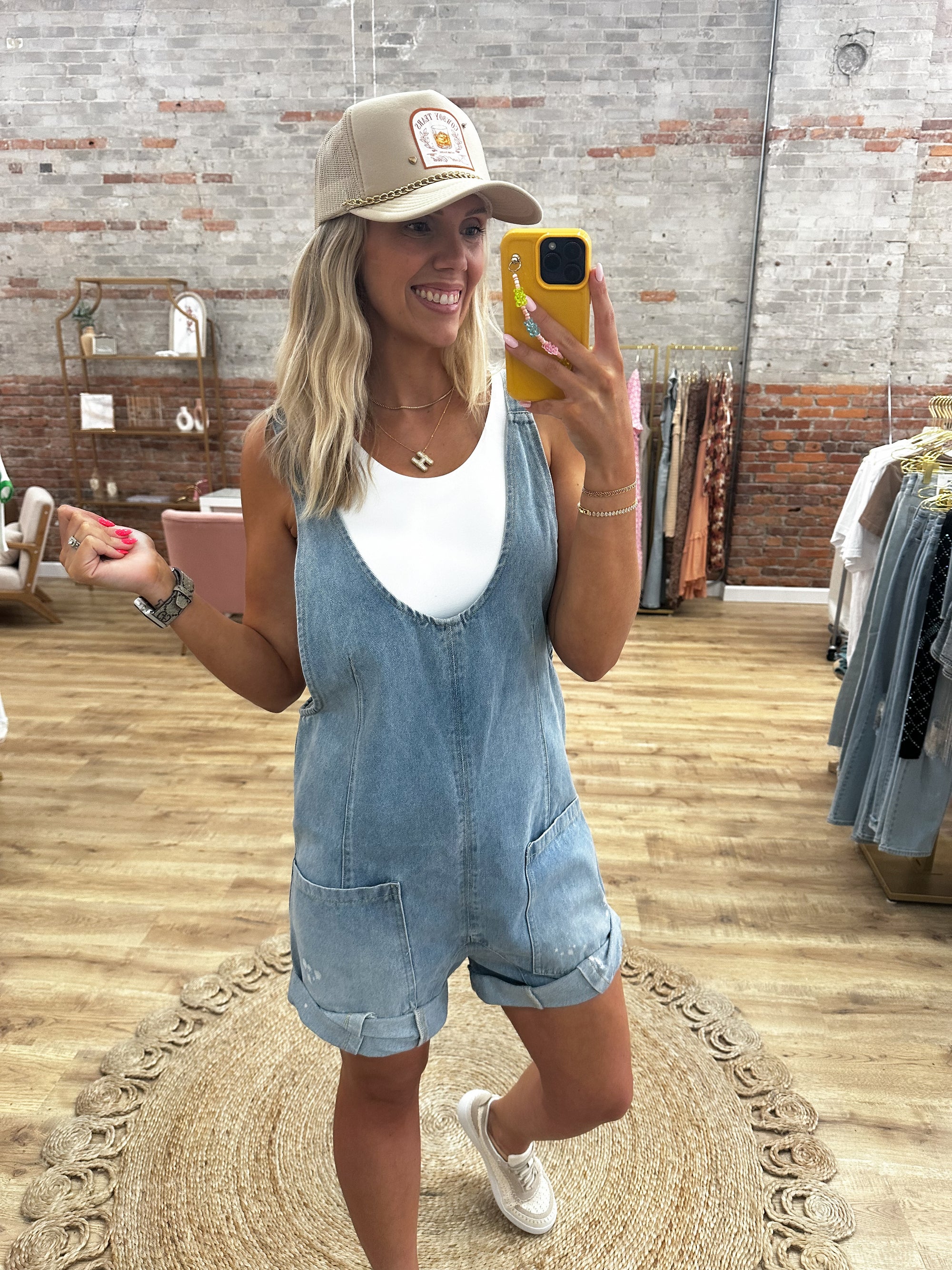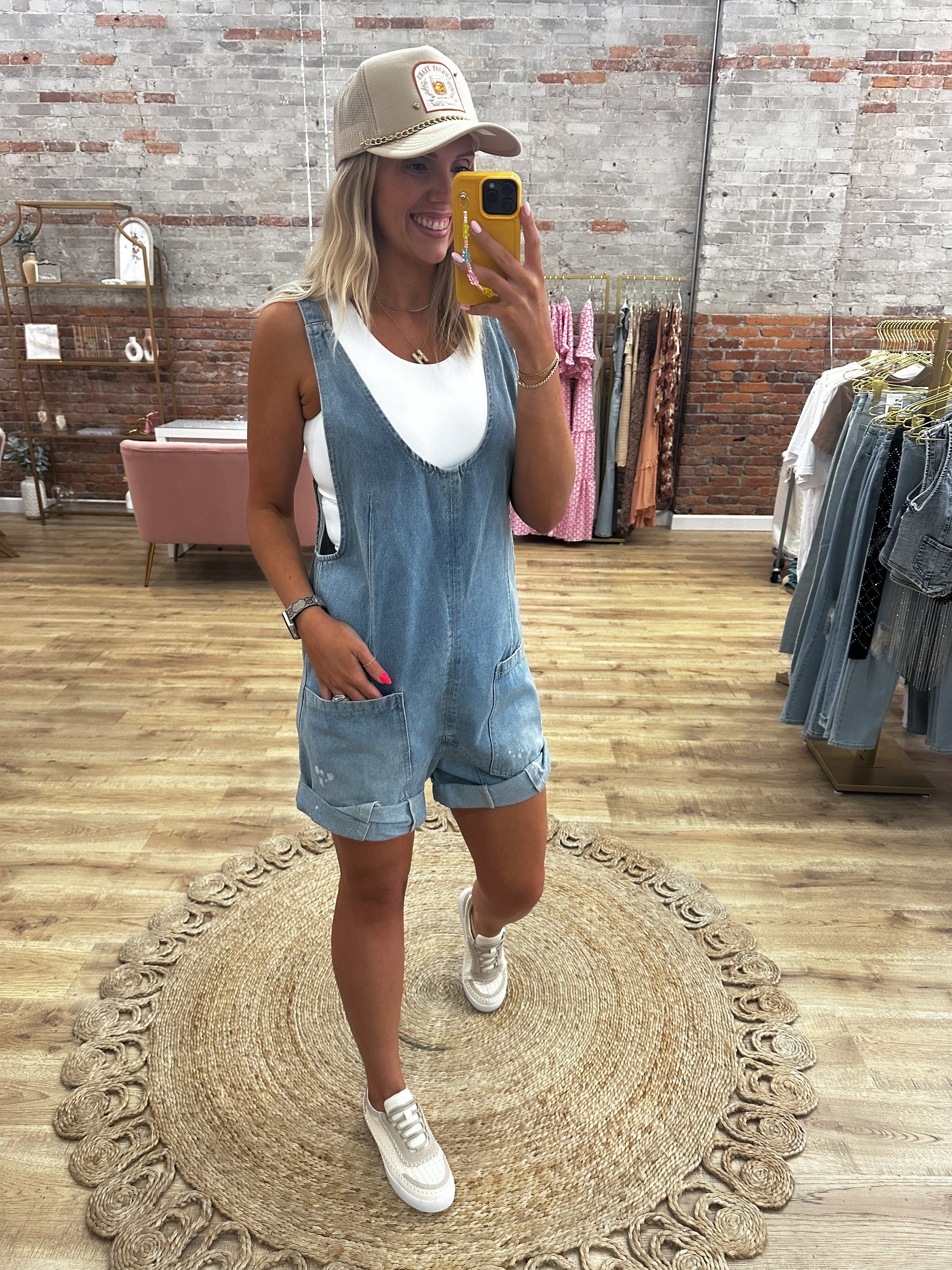 Alyssa Denim Pearl Romper - Denim - QUICK PREORDER