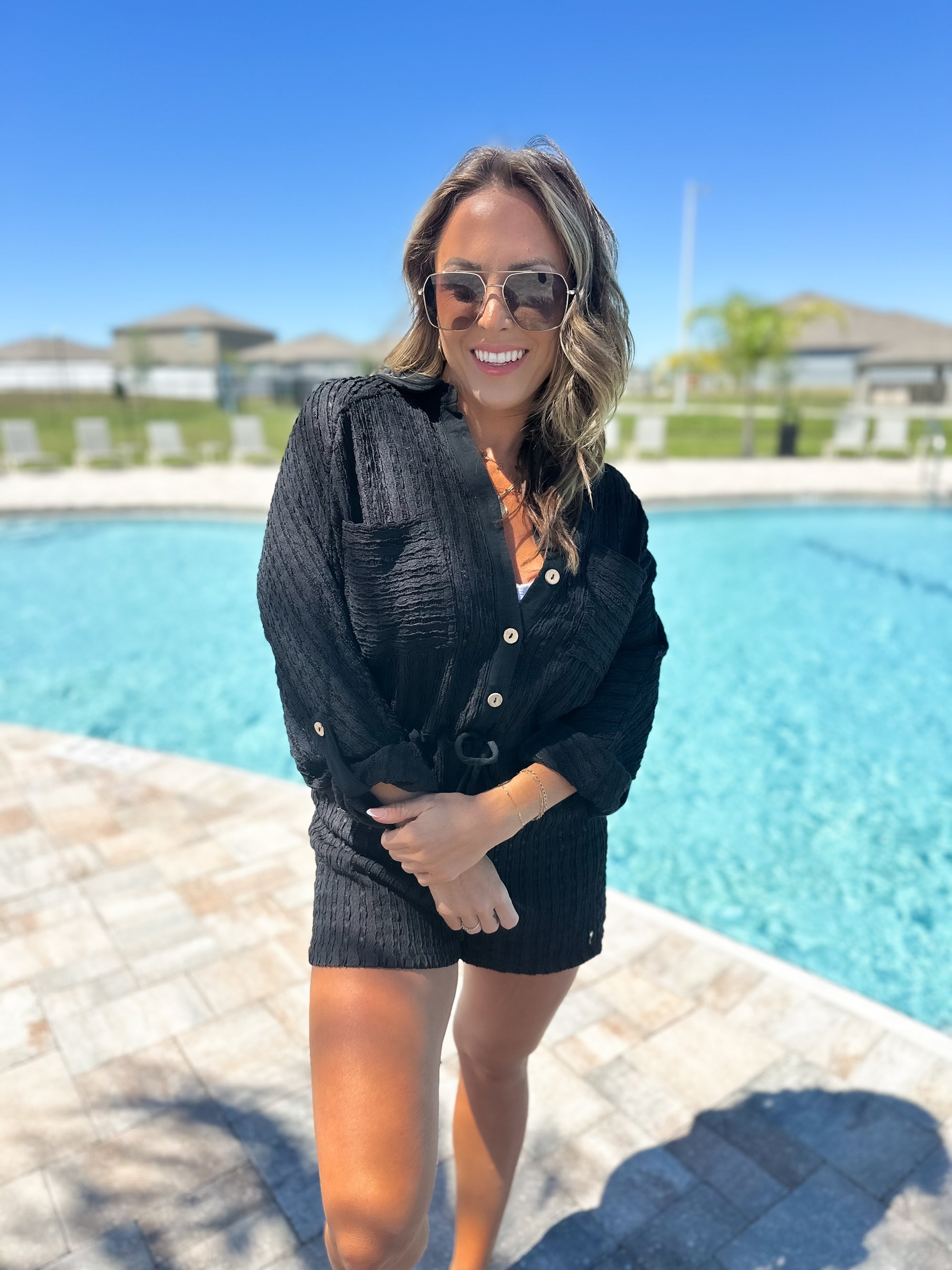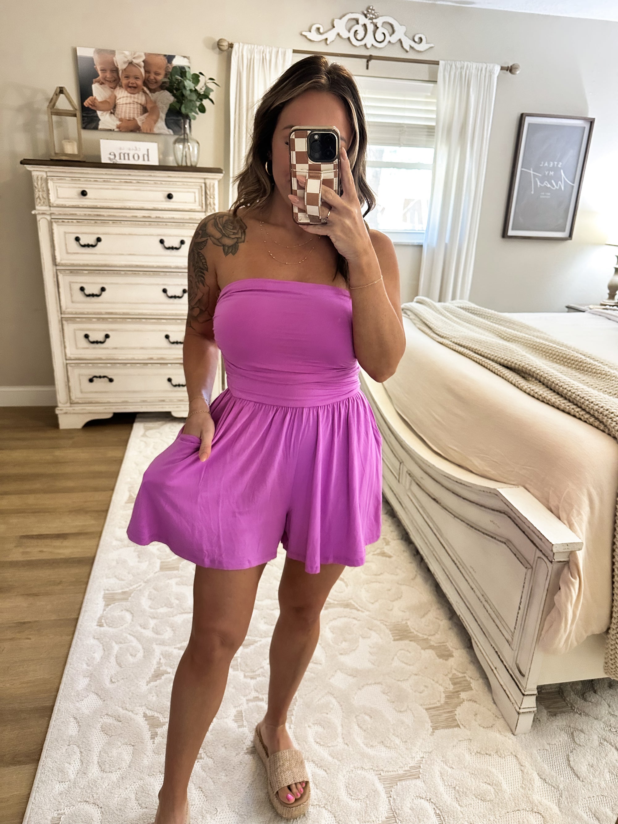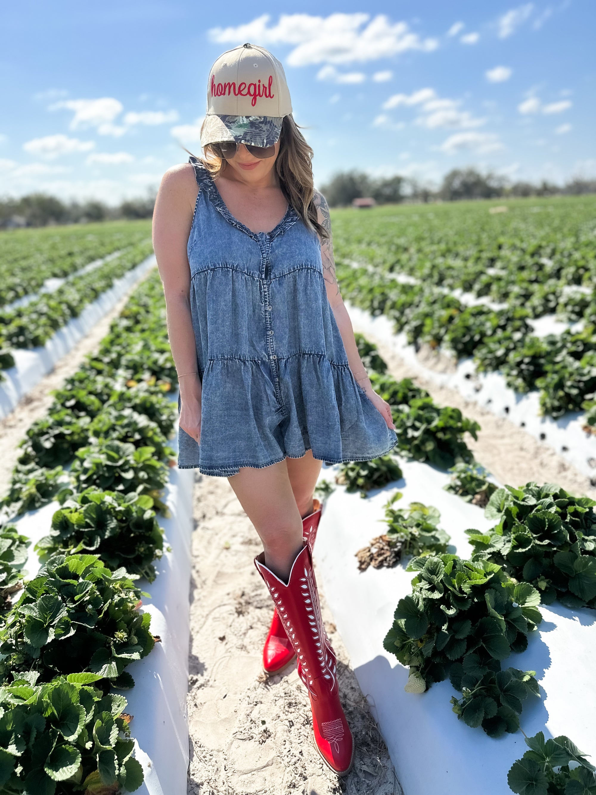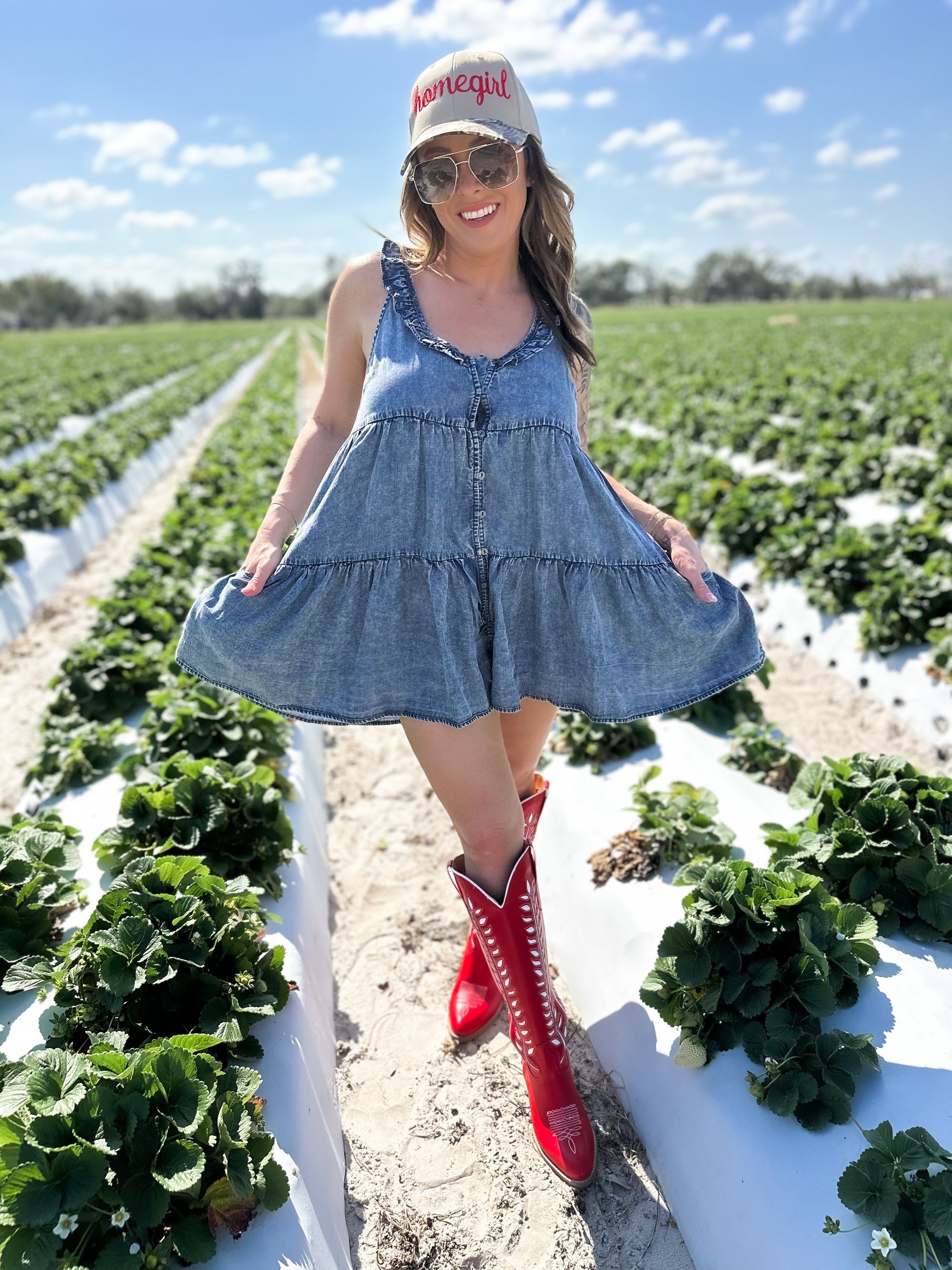 Alyssa Denim Pearl Romper - Denim - QUICK PREORDER