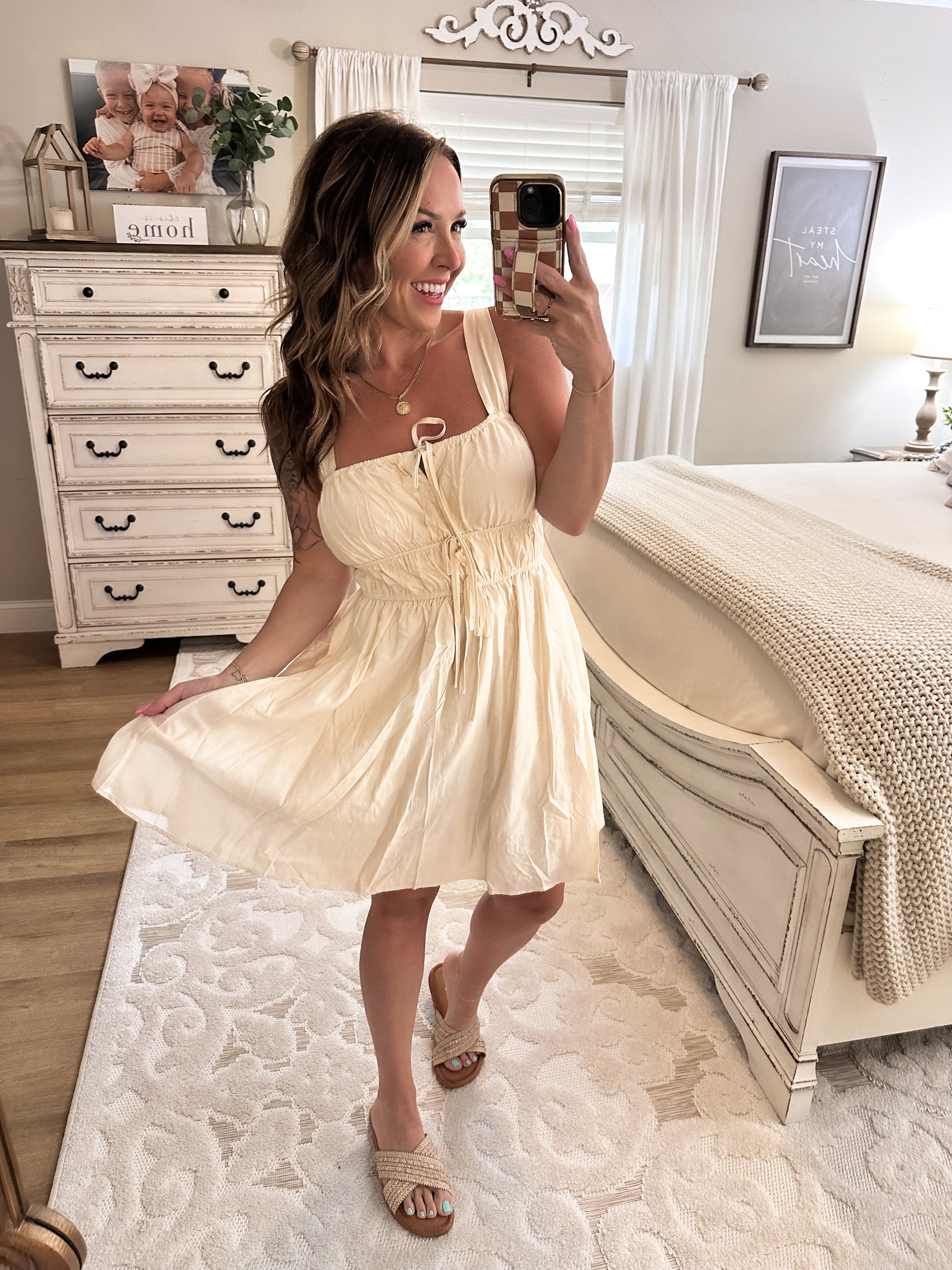 Shannon Bow Embroidered Tiered Romper - Ivory