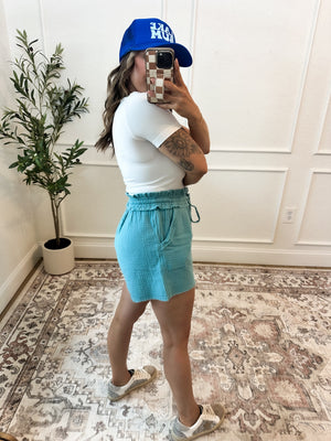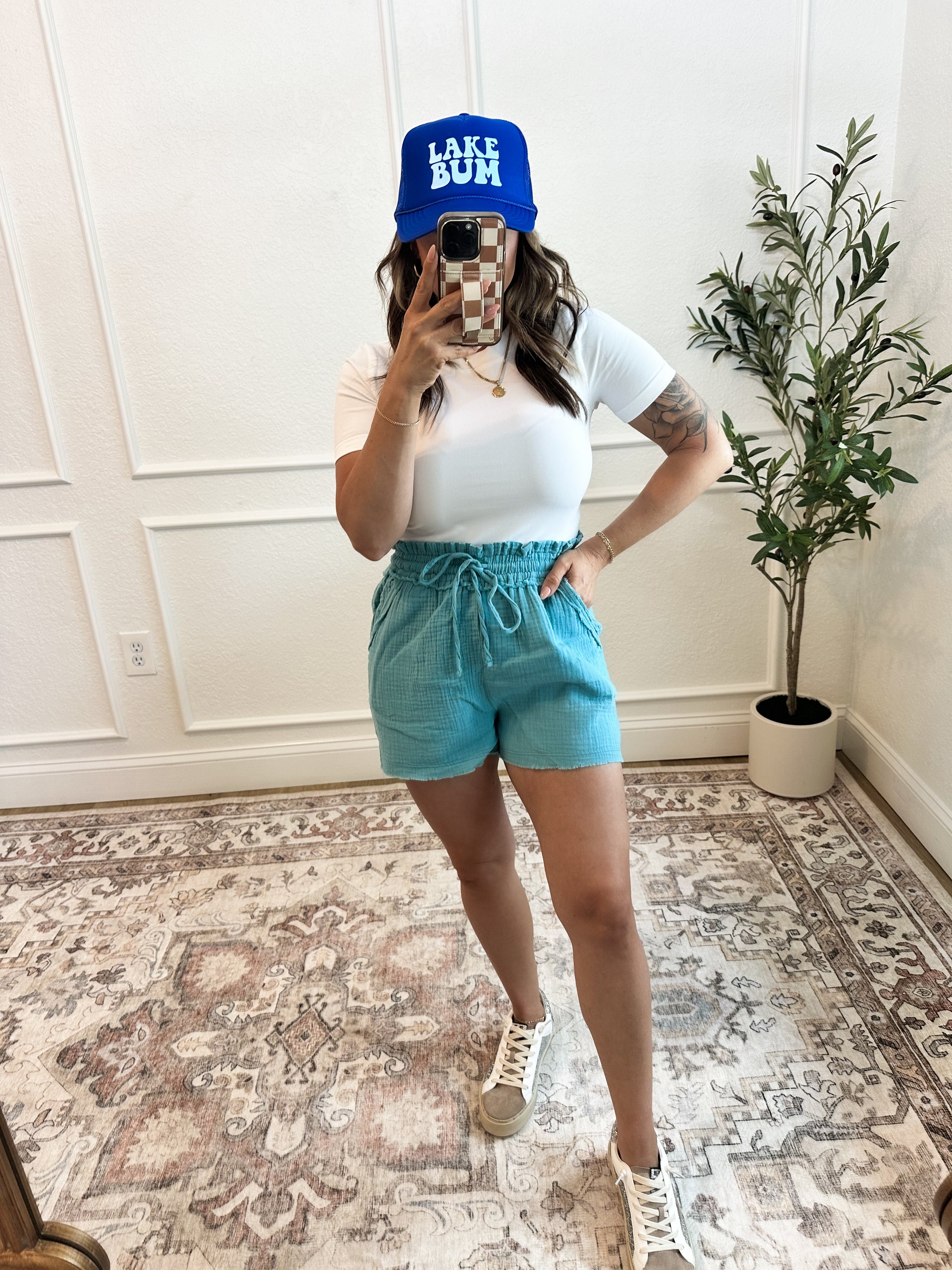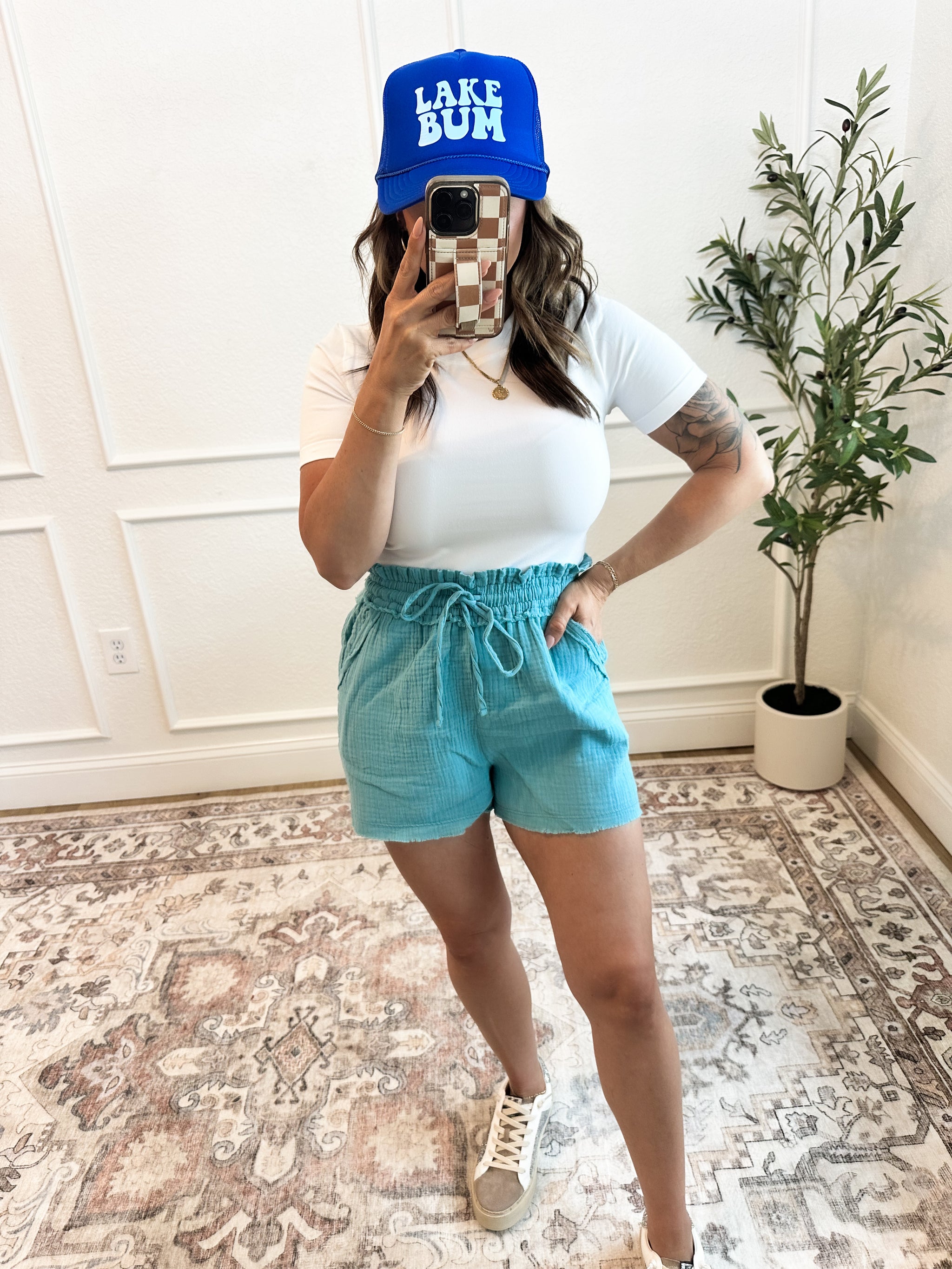 Unleash your inner carefree spirit with our Living The Life Gauze Shorts. Made from double gauze fabric, these shorts feature a comfortable elastic waistband and convenient pockets. Perfect for any adventure, these shorts are the epitome of style and practicality. Because living your best life means looking good while doing it.