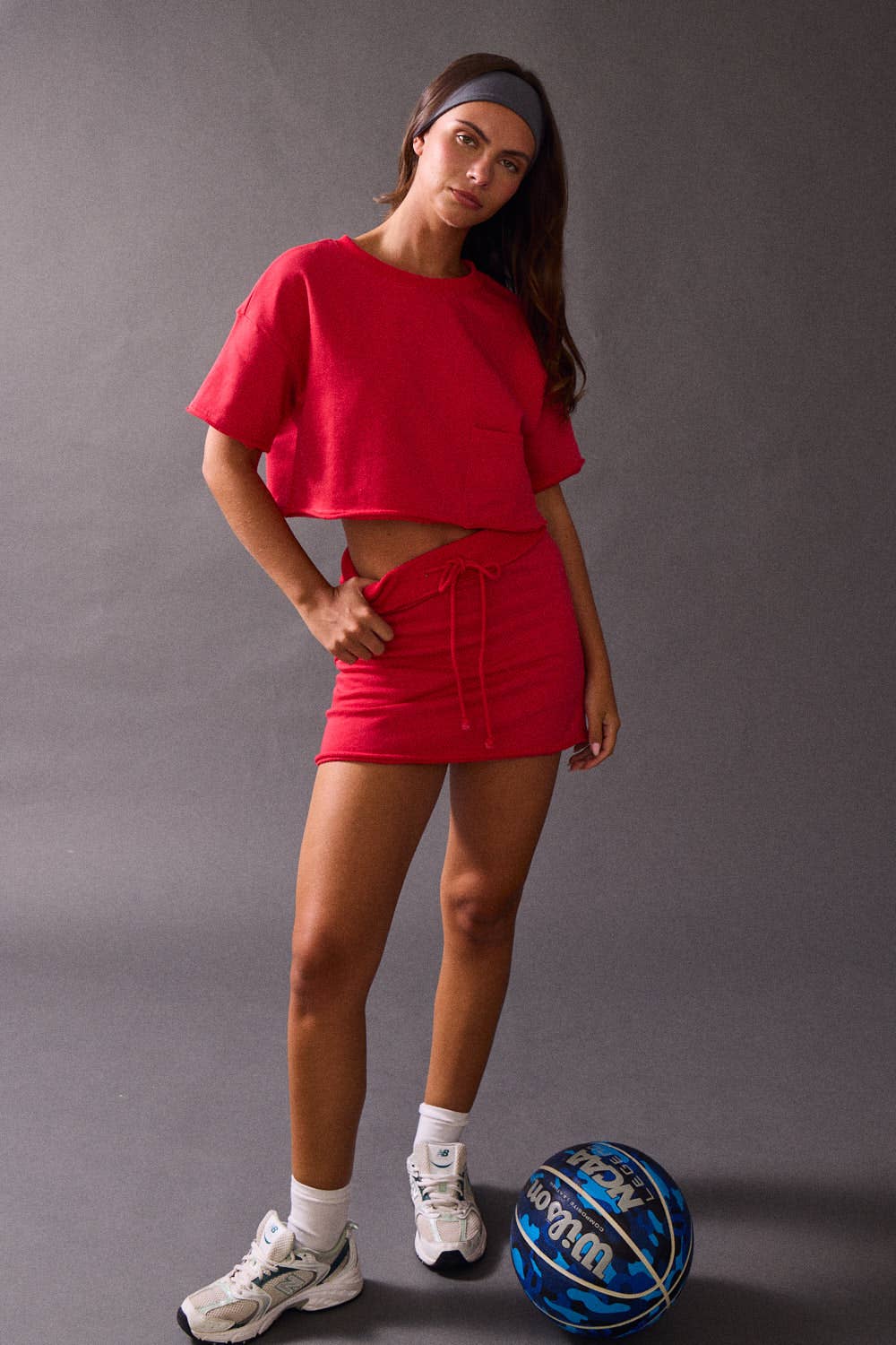 Nora Cropped Pocket Sweater Tee - Red