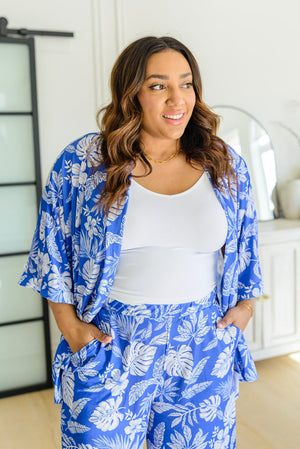 Wrap yourself in the elegance and softness of stories untold with Tropical Stories Kimono. Crafted from lightweight jersey knit fabric and a stunning statement block floral print, this open front kimono pairs luxuriously with your favorite outfits for an air of exotic charm. Slip into the boxy kimono silhouette or pair with the matching Tropical Stories Pants.