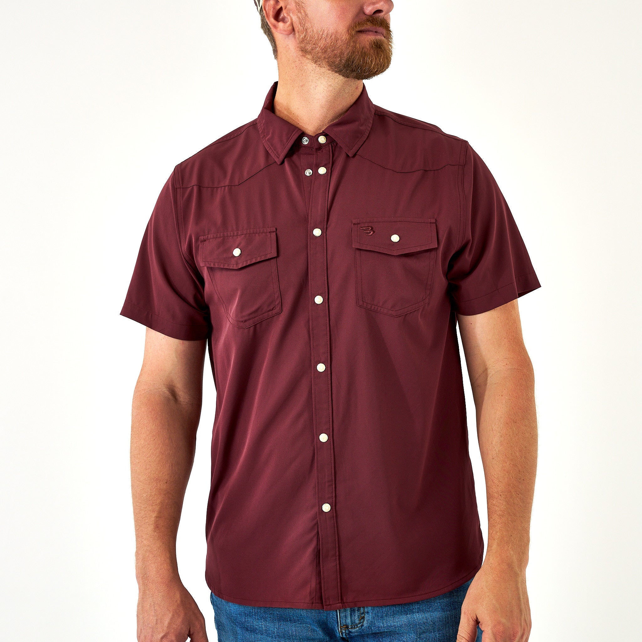 Quick Drying and Moisture Wicking 90% Polyester and 10% Spandex Spread Collar and Left Chest Pocket  Lightweight BURLEBO Performance Fabric Pearl Snap Buttons Fits true to size