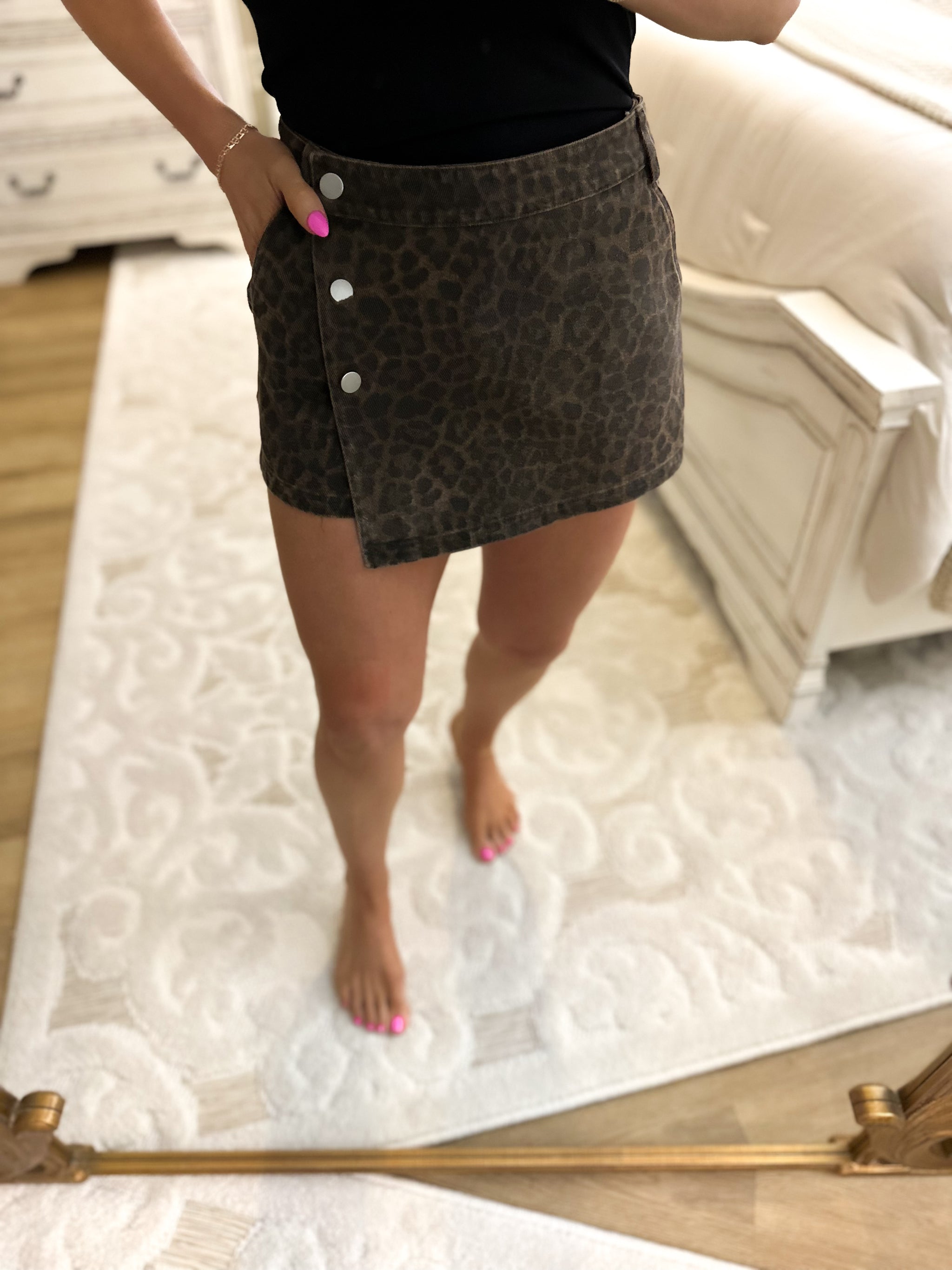 Spotted style meets everyday comfort in this Everley Leopard Mini Skirt. Featuring a bold leopard print, functional pockets for your essentials, and charming button detailing, this skort hybrid gives you the best of both worlds—skirt vibes with shorts security. Perfect for anyone who refuses to choose between fashion and practicality.