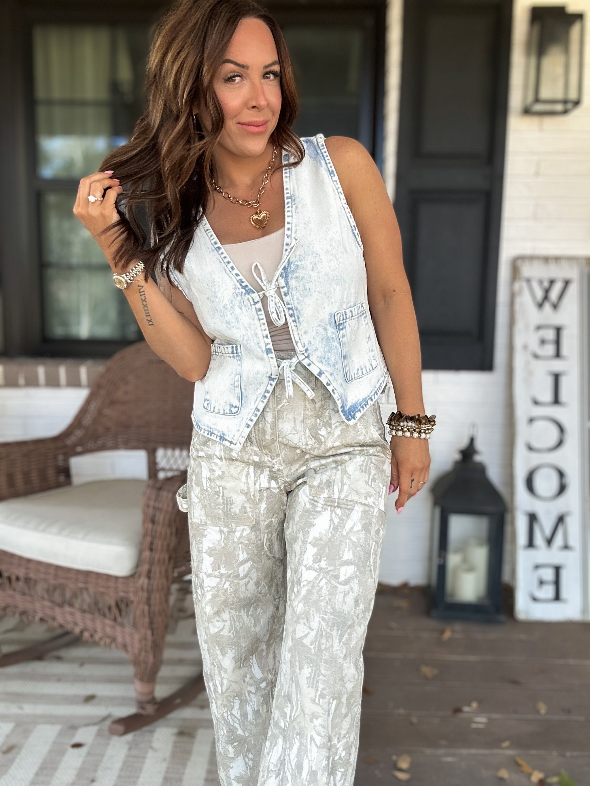 Gear up for adventure in these Mandi Camo Cargo Pants! Featuring practical cargo pockets perfect for stashing all your essentials—phone, keys, snacks, you name it—these pants keep everything within reach. The elastic waist delivers a comfortable, flexible fit that moves with you, whether you're hiking trails or just living your best life. Rock that tactical vibe with style and comfort that actually works.