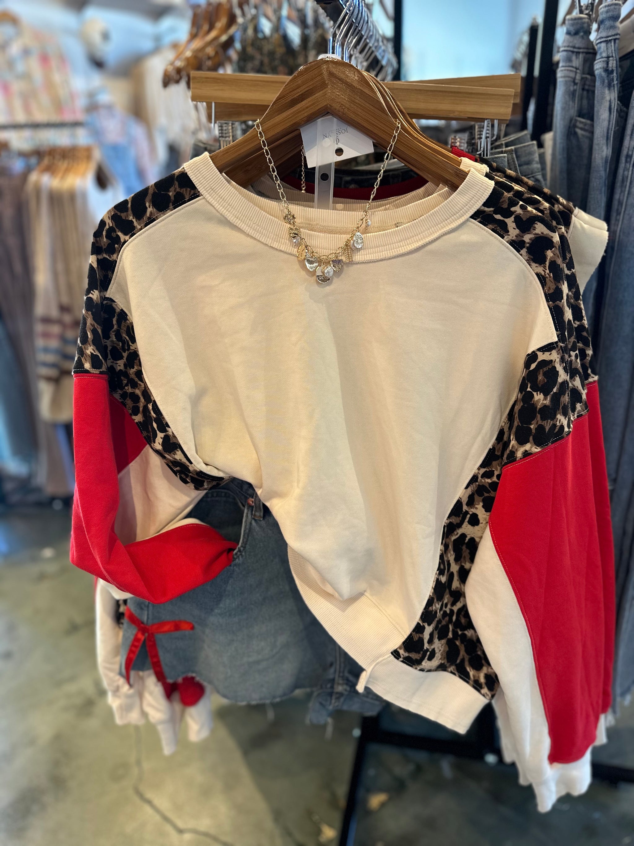 The Noah Leopard Color Block Top combines contemporary design with versatile styling. This long sleeve pullover features a striking leopard print paired with contrasting color blocking, creating visual interest that works seamlessly across multiple outfits. The drop shoulder silhouette delivers a relaxed, modern fit that flatters various body types while maintaining a polished appearance. Crafted for everyday wear, this piece transitions effortlessly from casual weekends to layered autumn looks. The blend of animal print and color blocking ensures you'll reach for this top repeatedly throughout the season.