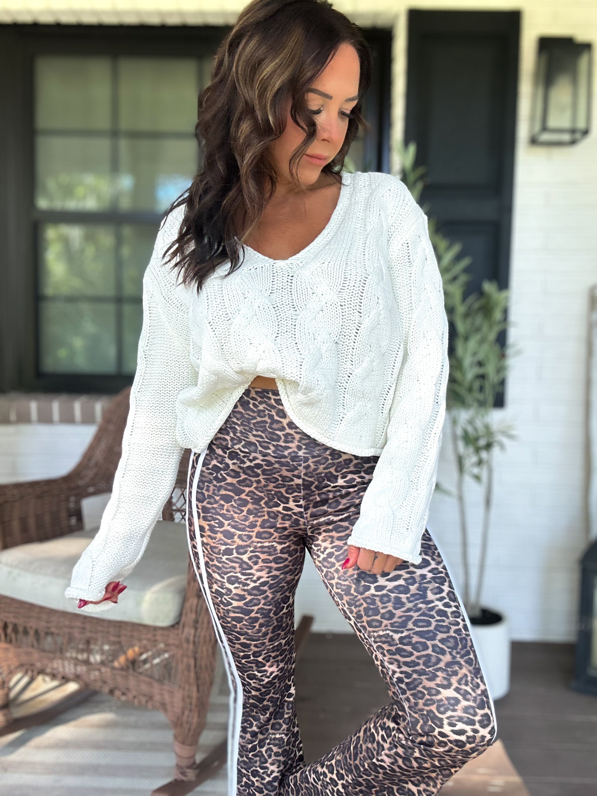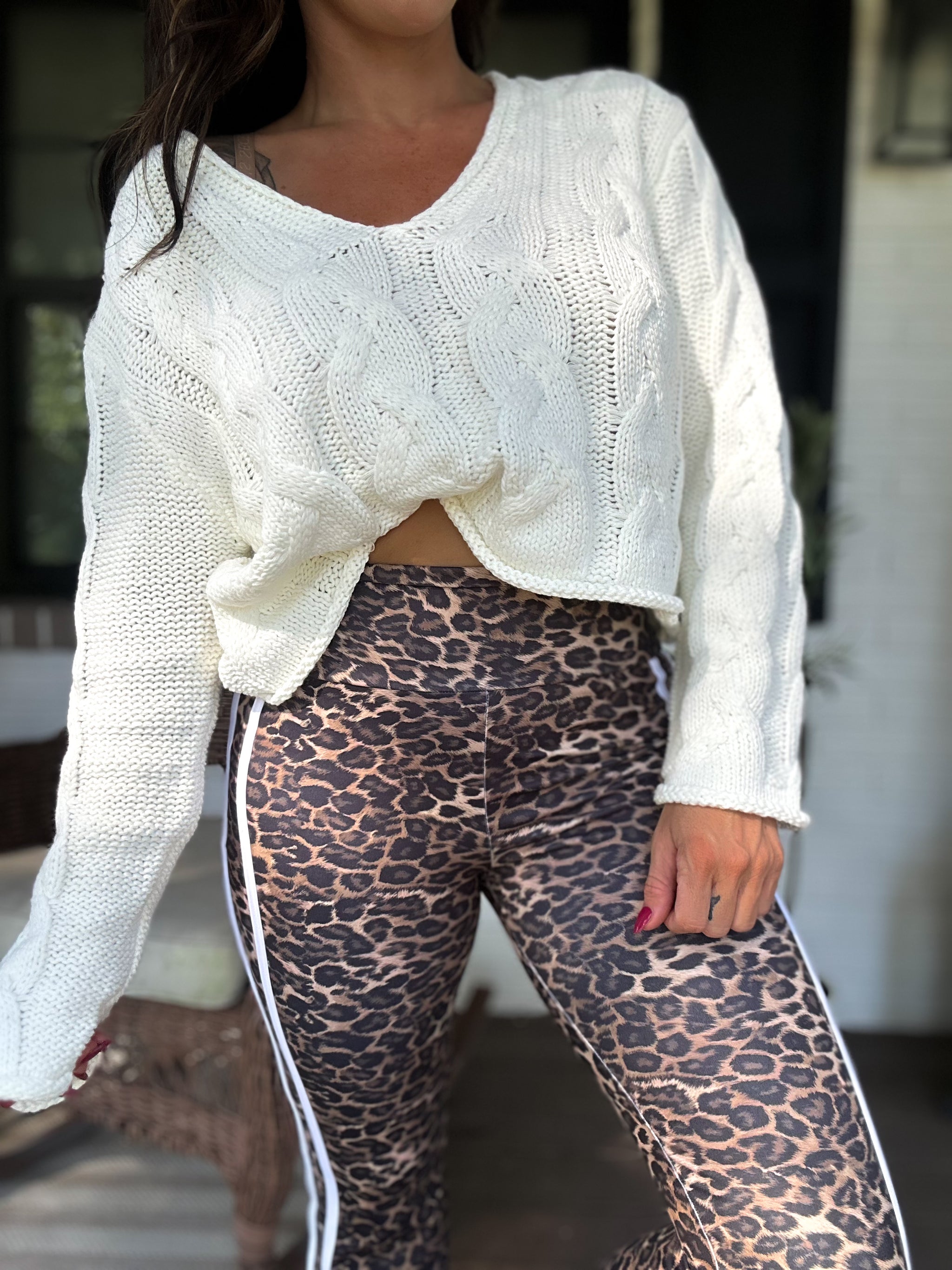 Stay cozy and cute in the Rachel Renee Cable Knit Sweater! This off-white beauty features a deep V-neck and a flirty cropped fit, perfect for layering or showing off your favorite high-waisted jeans. Soft, warm, and effortlessly stylish, it’ll keep you snug without sacrificing on fun. Whether you’re brunching or just chilling, this sweater brings charm and comfort in one cozy package.