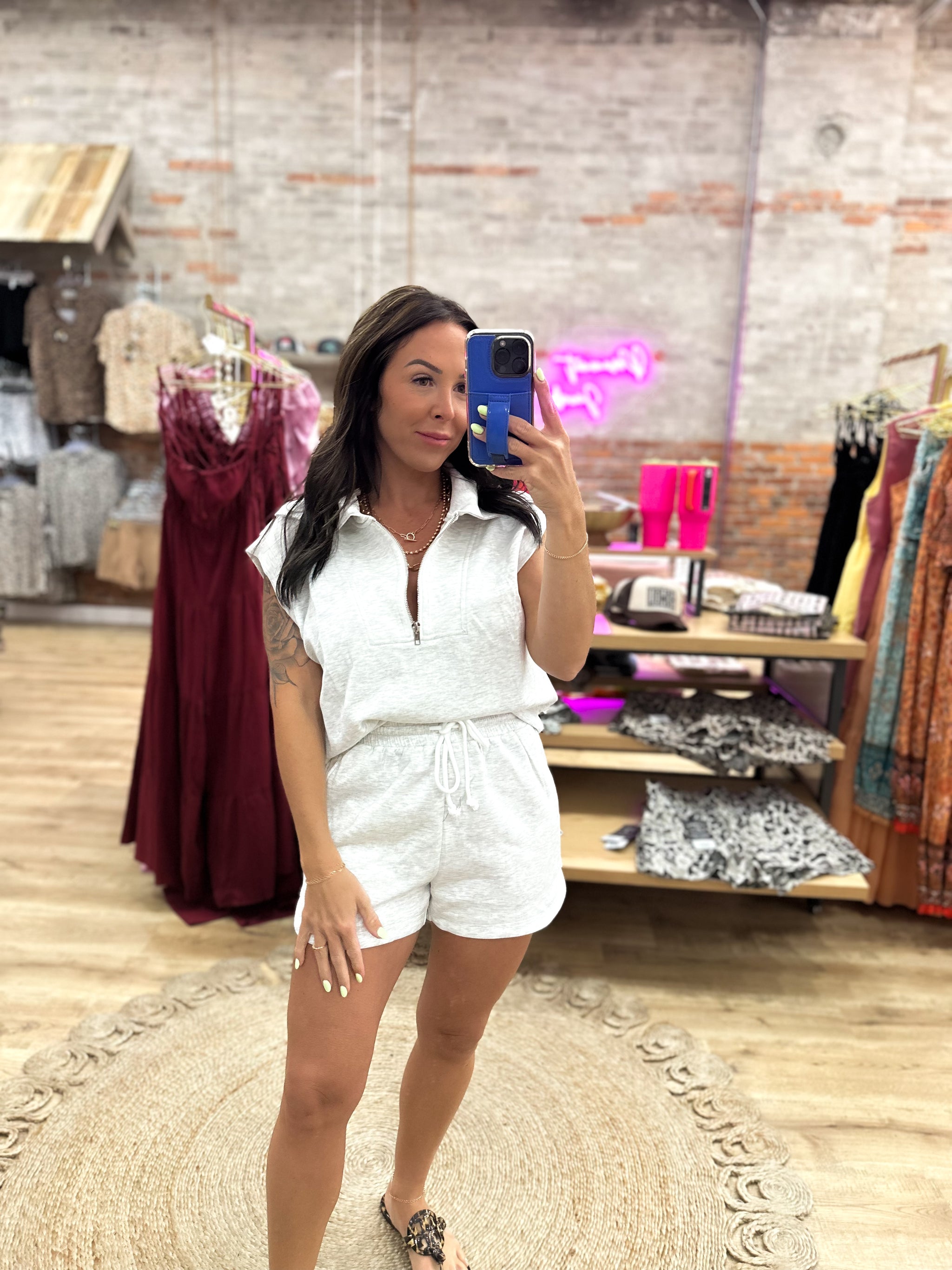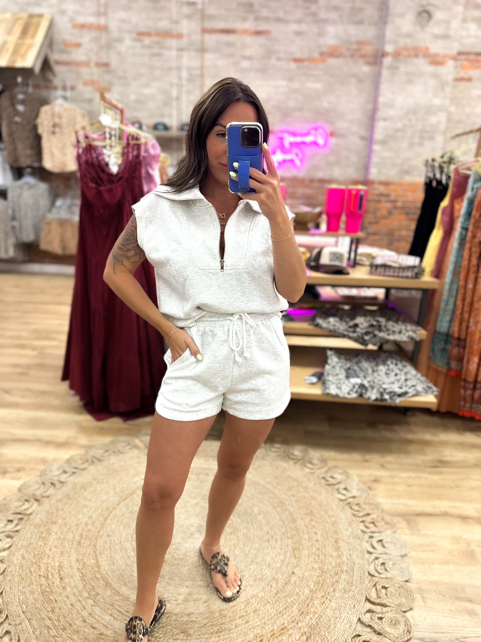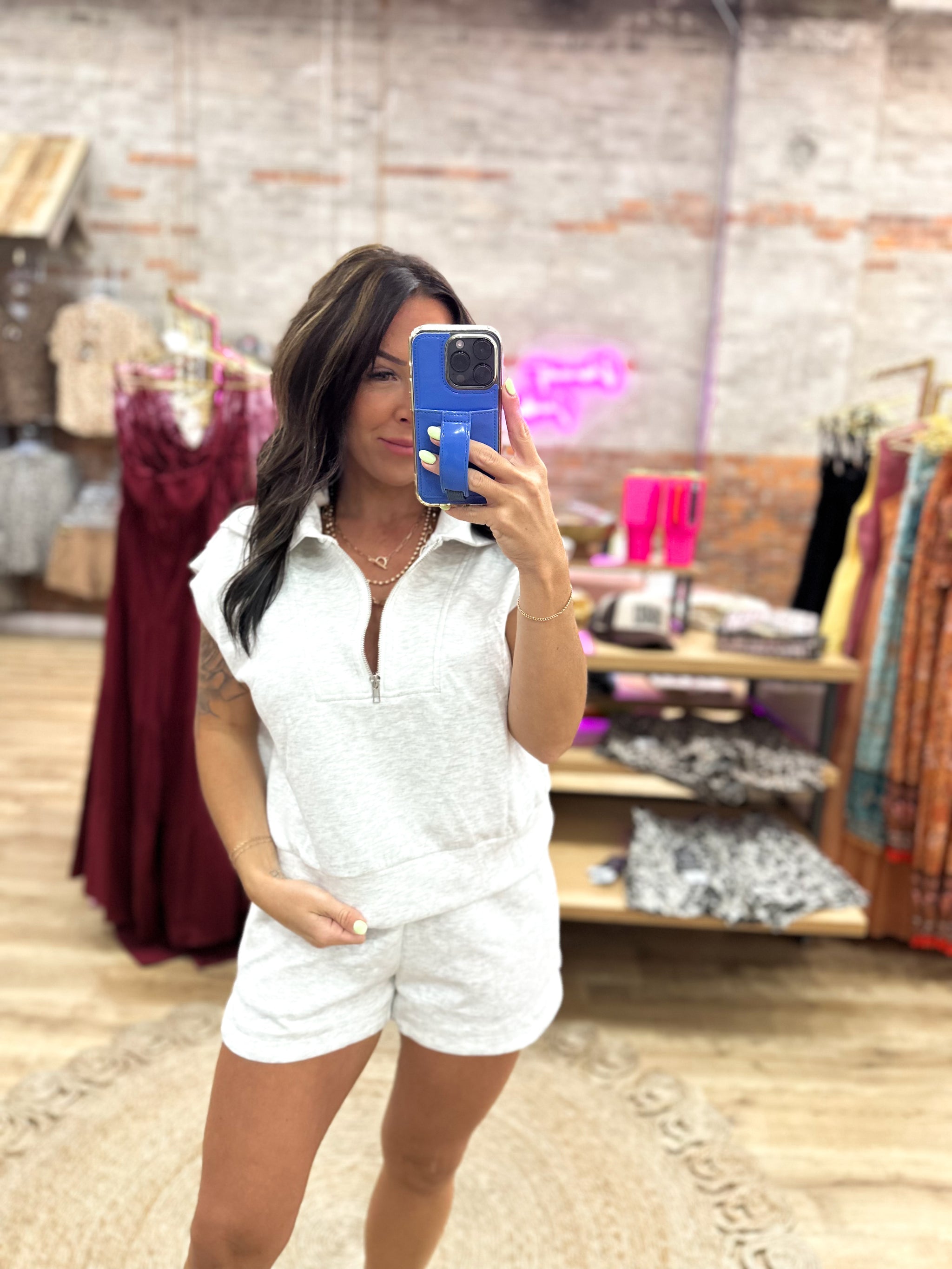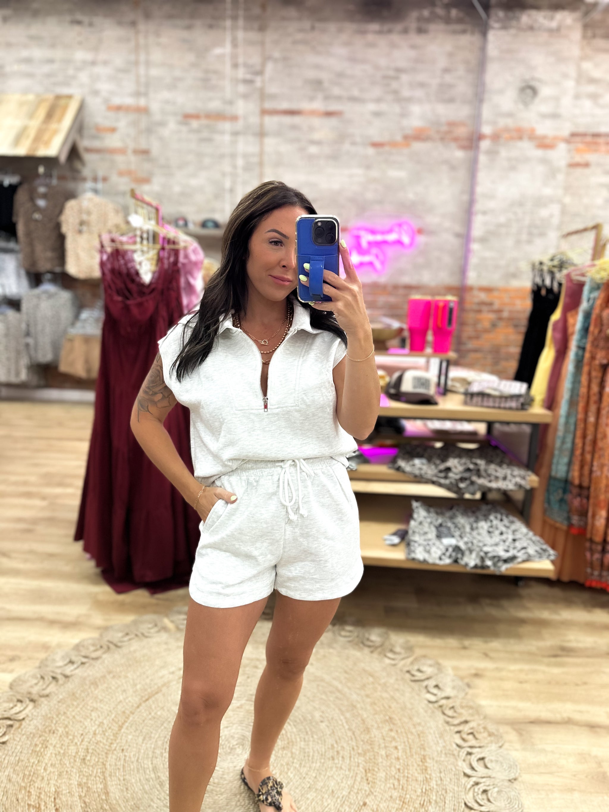 – Sold OutGet ready to lounge in style with the Lucky To Have You Scuba Short Set. Featuring a half-zip cropped sweatshirt paired with comfy matching shorts, this set combines sporty vibes with a playful touch. The cropped top hits just right at 20 5/8" length, complementing the 9" shorts with an easygoing fit and 11 1/2" leg openings. Perfect for chill days when you want to look cute and feel cozy!
