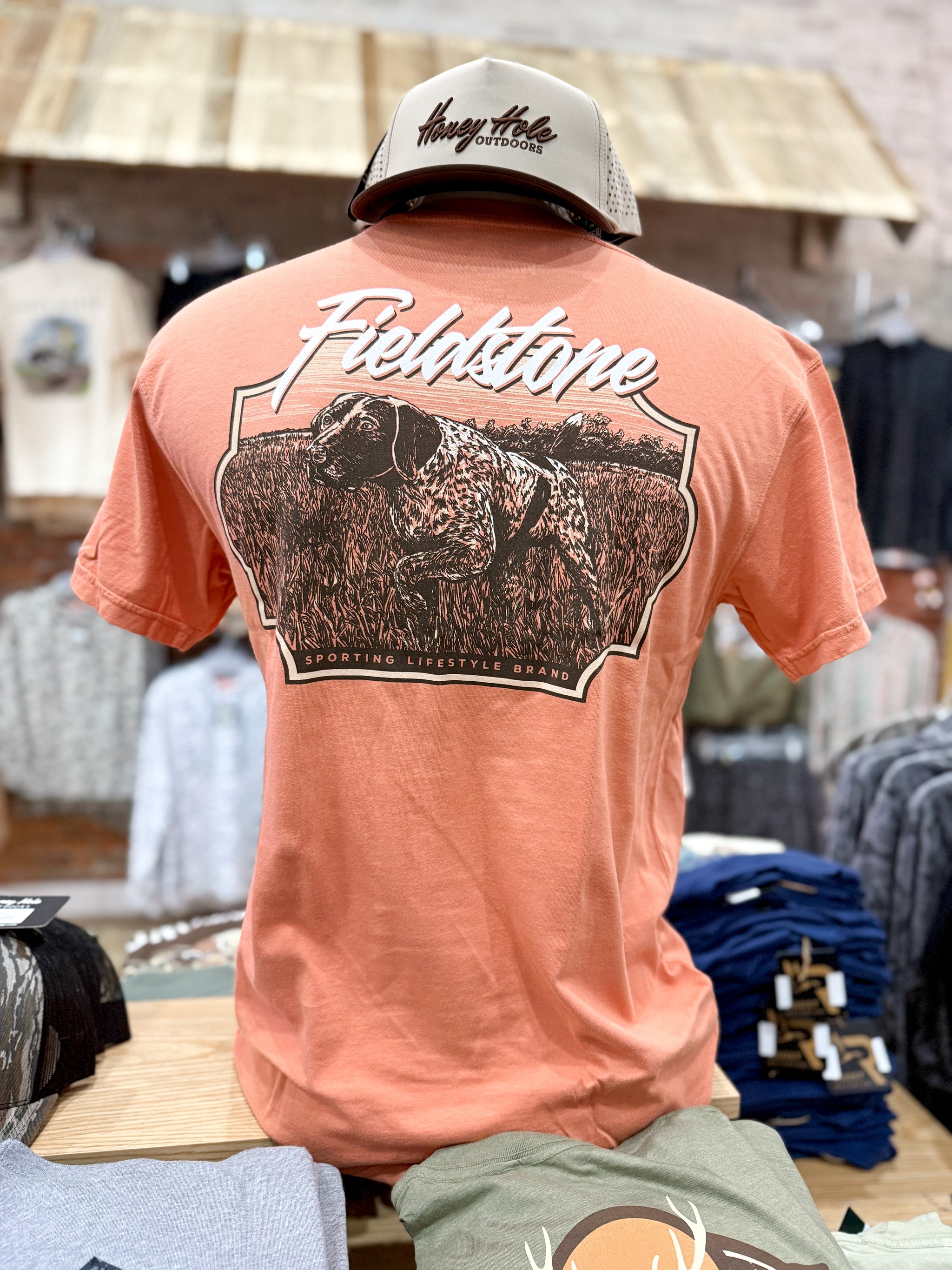 – Sold OutFieldstone signature T-shirts will be the softest shirt in your closet. Each shirt goes through a unique garment wash process for a "worn in" look and feel. Our custom graphics are designed to be unique and are perfect for a day at the farm, a day on the beach and for everything else life throws our way.