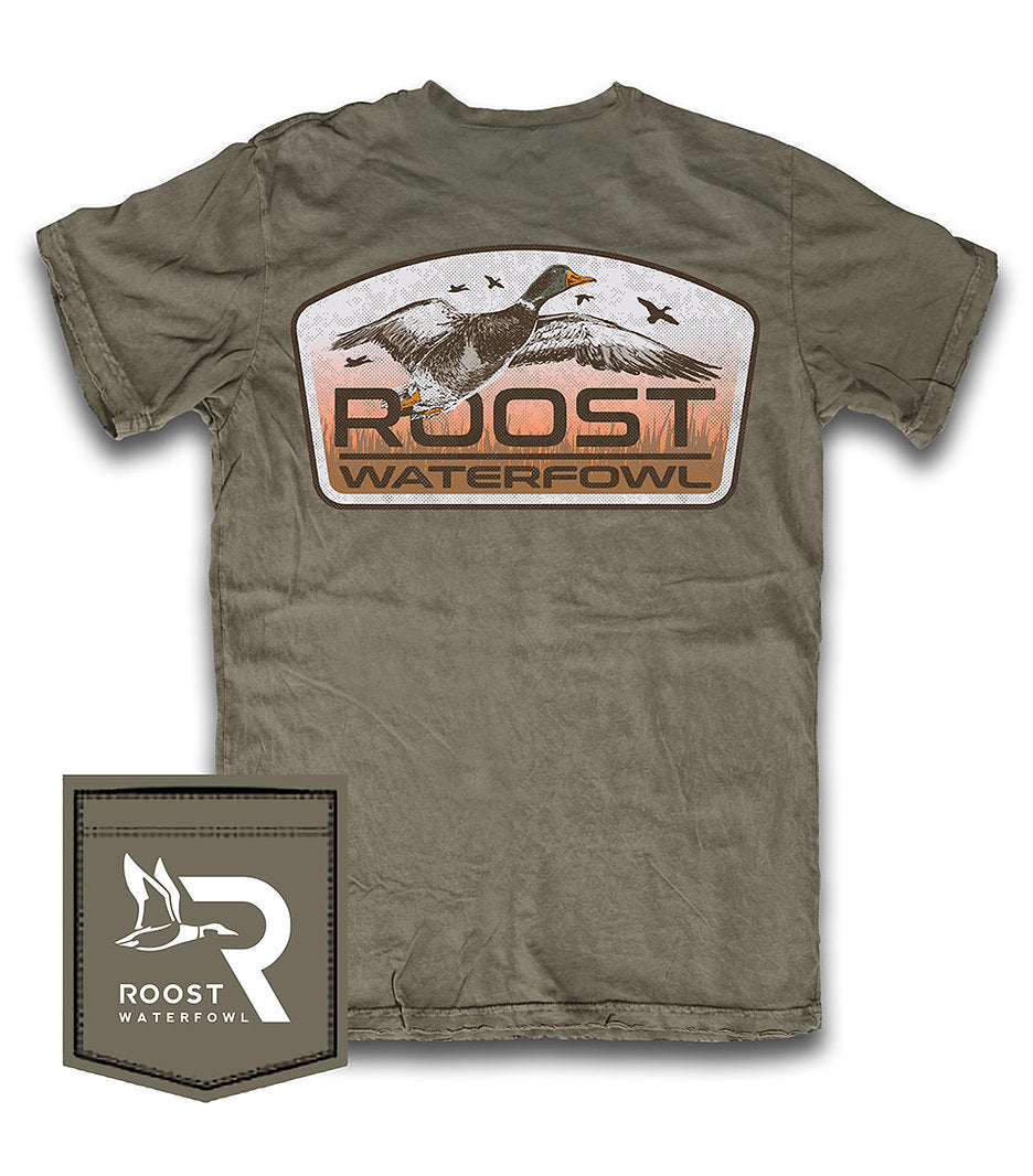 Roost Waterfowl signature T-shirts will be the softest shirt in your closet. Each shirt goes through a unique garment wash process for a "worn in" look and feel. Our custom graphics are designed to be unique and are perfect for a day at the farm, a day on the beach and for everything else life throws our way.