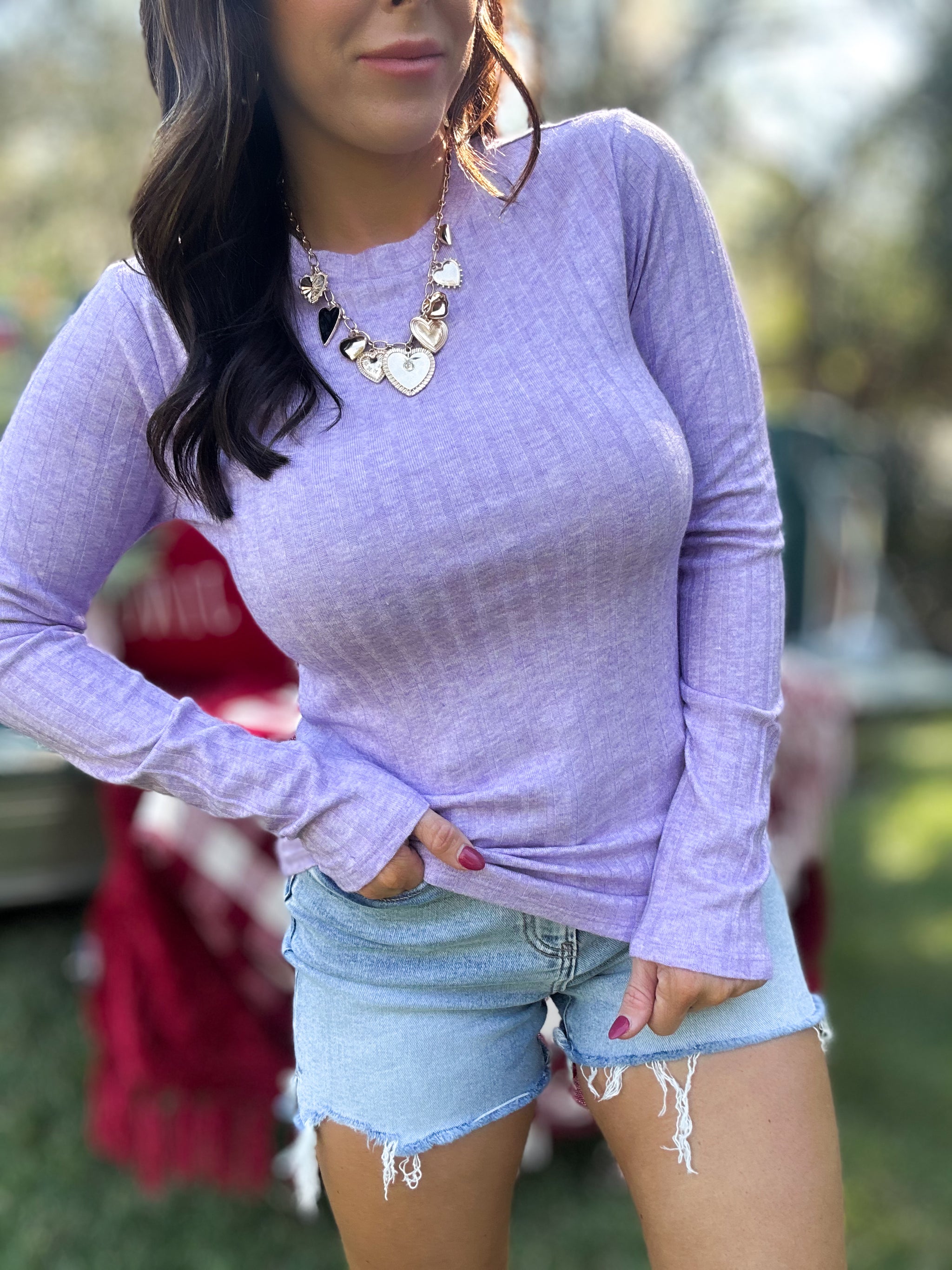 DOORBUSTER - Jackie Ribbed Long Sleeve Top - Lavender