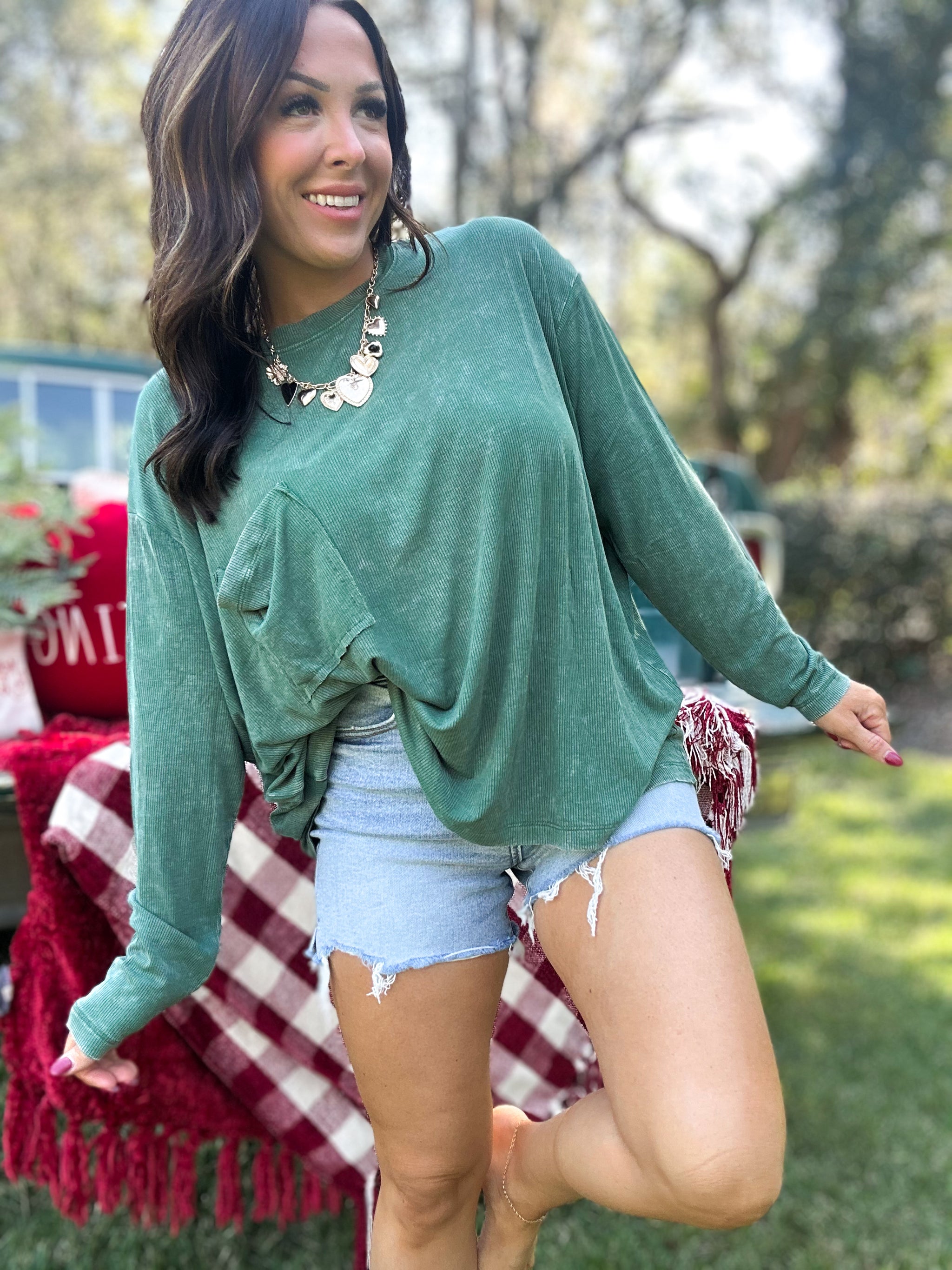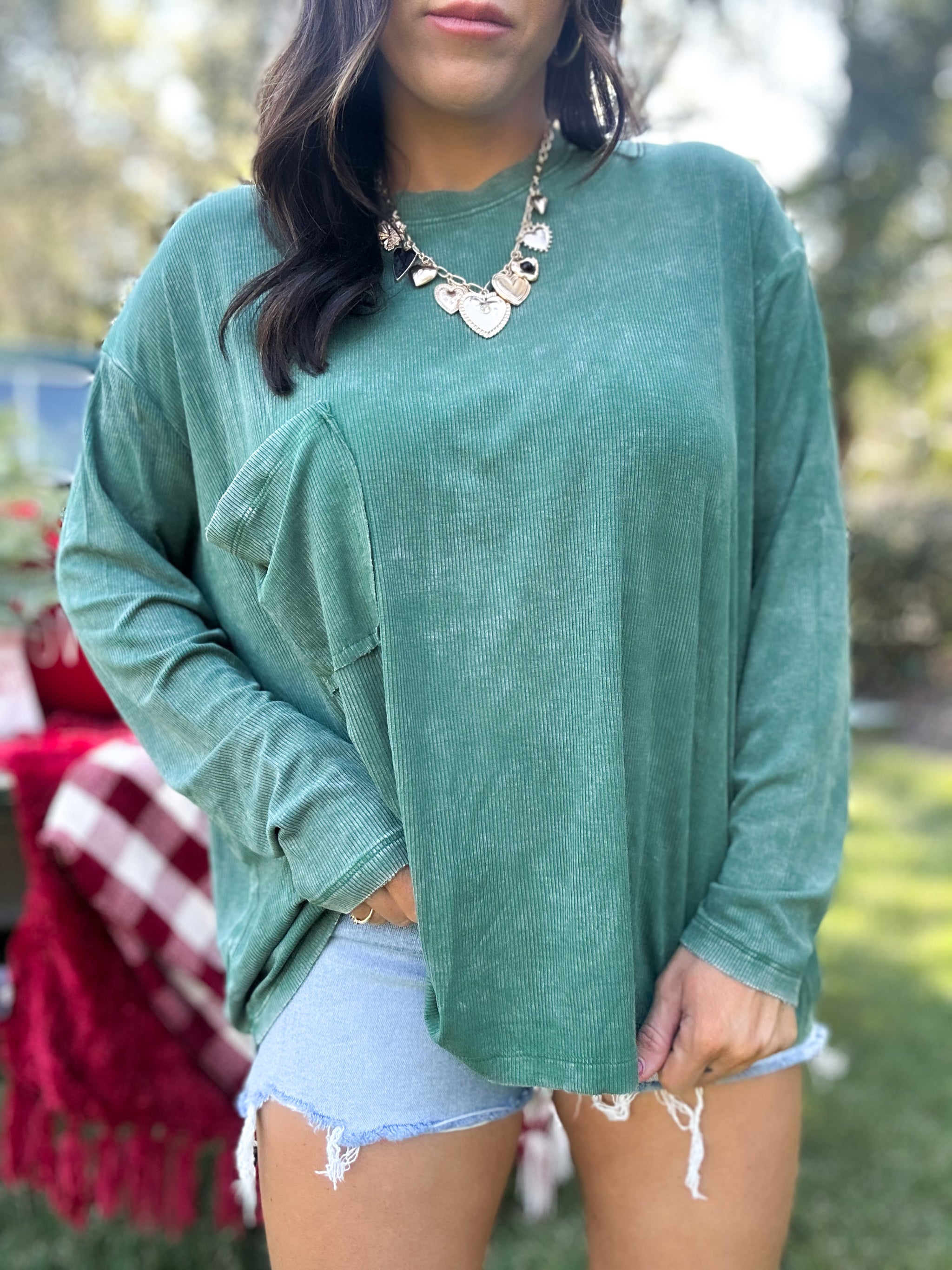 DOORBUSTER - Remi Ribbed Dolman Top - Dark Green