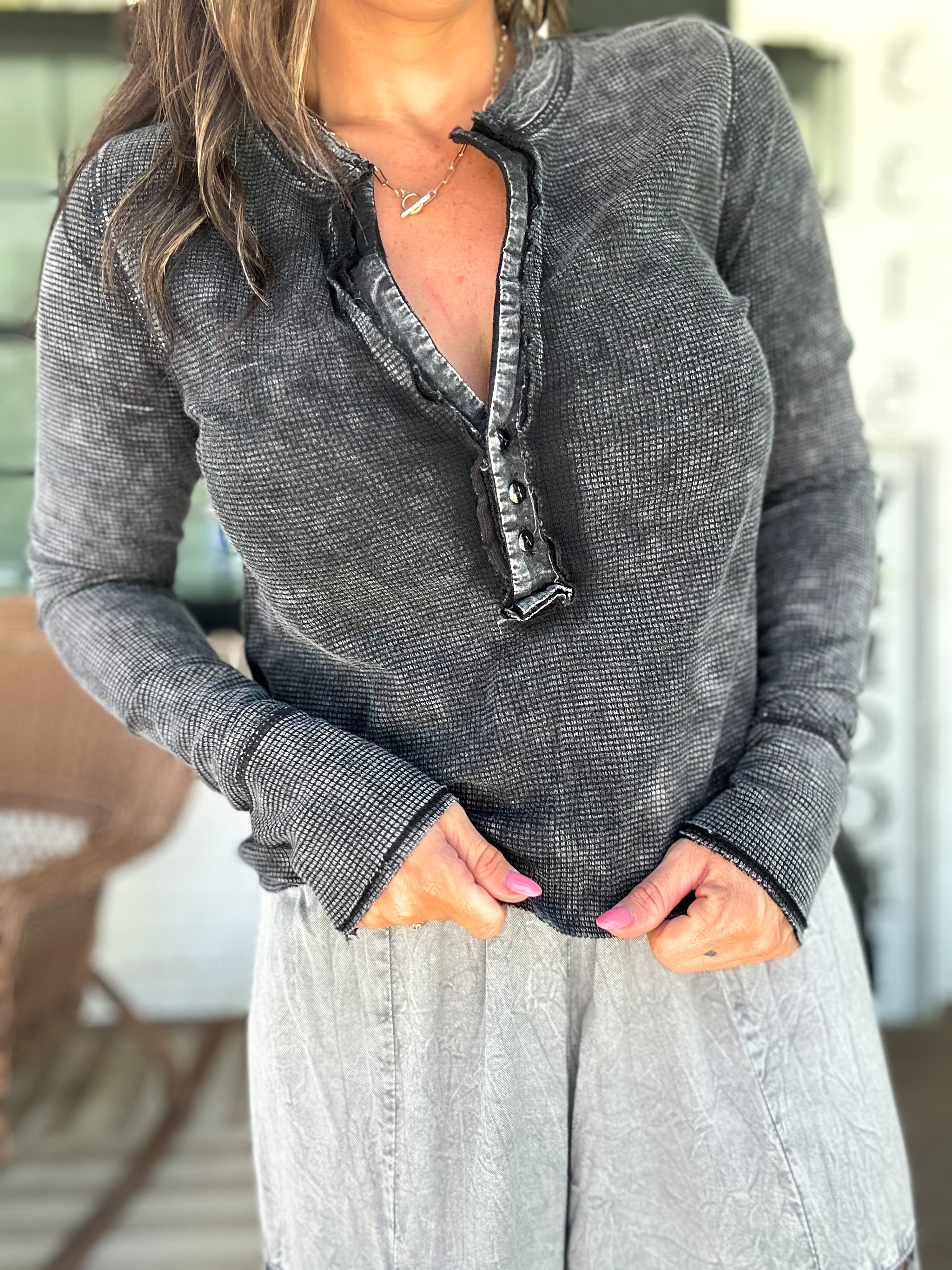 The Montana Waffle Knit Henley Top is your new go-to for cozy days with a twist. Featuring a playful frayed seam and easy button closure, it brings texture and charm to your casual look. Soft waffle knit fabric ensures all-day comfort while adding a fun edge to your wardrobe basics. Perfect for layering or wearing solo, this top keeps things effortlessly cool and comfy.