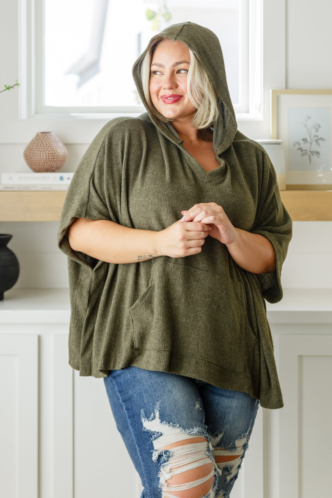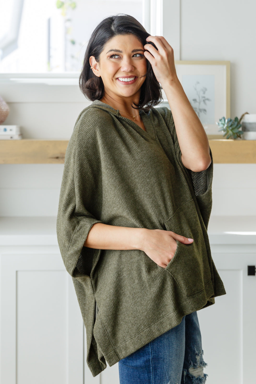 – Sold OutAchieve impeccable style and comfort with the Perfectly Poised Hooded Poncho. Crafted from lightweight ribbed jersey knit in a poncho-style, this piece features a hood and kangaroo pocket for ultimate warmth and coziness. Feel poised, put-together, and stylish - no matter what the day brings!