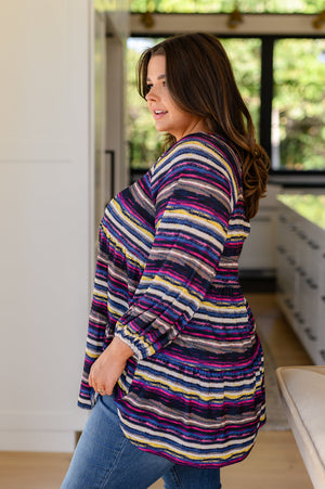 Our Circle Back Striped V-Neck Top is sure to make an impact! It's made with effortless bulgari fabric and features a stylish variegated stripe pattern along with a v-neckline and tiered construction - perfect for adding a touch of flair to your wardrobe. Could this be your new go-to favorite top?