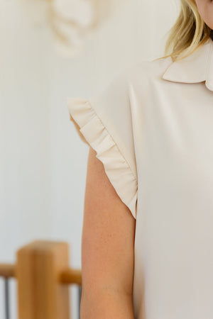 This Day Date Ruffle Sleeved Blouse is designed to add a touch of sophistication to any look. With its soft off-white hue, collared neckline and detailed ruffle sleeves, it’s the perfect blend of chic and classic. Boasting a button-front closure, this blouse will help you achieve a beautiful and effortless look.