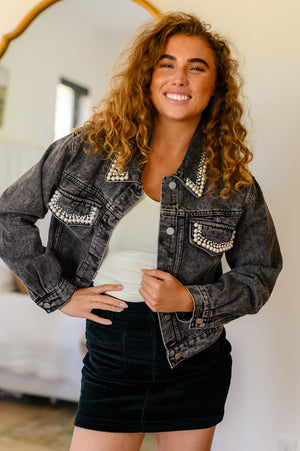 – Sold OutFeel powerful and stylish in our Denim And Pearls Denim Jacket! This unique piece is crafted from washed out black denim and adorned with pearl trim for an edgy, yet glamorous look. The boxy fit is both comfortable and flattering, making it the perfect look to elevate any outfit. Make a statement and shop yours today!