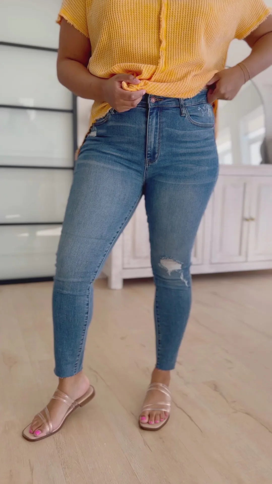 The Hi-Waisted Dandelion Embroidery Skinny is such a cute take on your classic skinny jeans! A stretchy, dark wash denim shapes a hi-rise waistline, five pocket cut, slight distressing, and skinny ankle length fit. And did we mention the cutest dandelion embroidery on the pocket?! Pair with your favorite summer blouse and sandals for a fit that'll brighten your day!