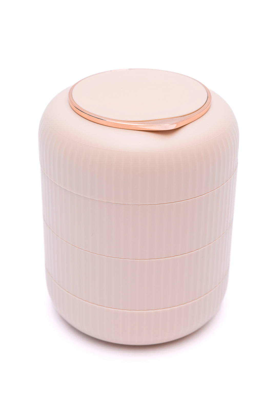 Indulge in the charm of organization with our Luxe Spiral Jewelry Storage. With four 360 swiveling tiers, each thoughtfully equipped with dividers, separating earrings, bracelets or other little treasures becomes a breeze. The addition of a delicate gold-accented mirror on the top tier adds a touch of luxury.