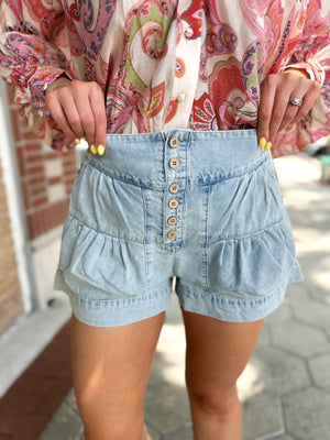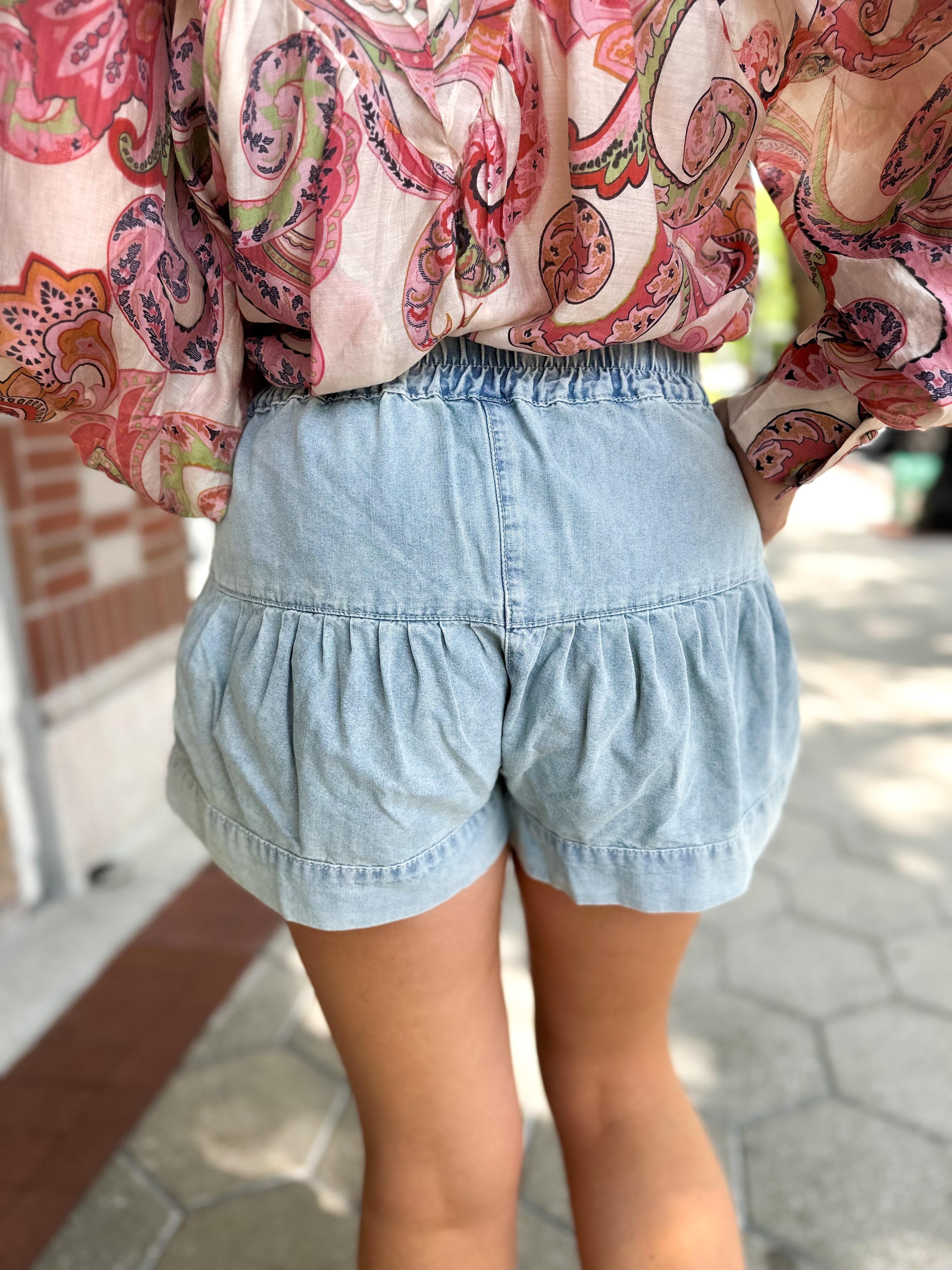 Introducing the Never Find Another Pleated Shorts - Medium Wash! These mineral washed shorts feature a unique pleated style, button down closure, and pockets for convenience. With an elastic waistband for comfort, you'll never want to take them off. Upgrade your summer wardrobe now!