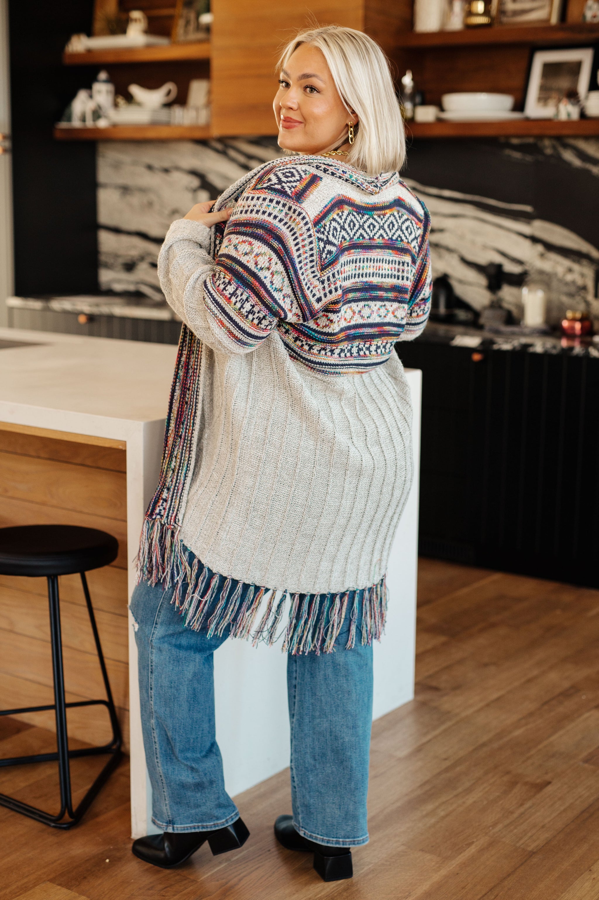 – Sold OutStay warm and stylish with our Oh So Lucky Fringe Cardigan! Made from a cozy rainbow sweater knit, this cardigan features a shawl collar and fringe trim for added flair. Perfect for adding a pop of color to any outfit, you'll feel lucky to have this cardigan in your wardrobe.