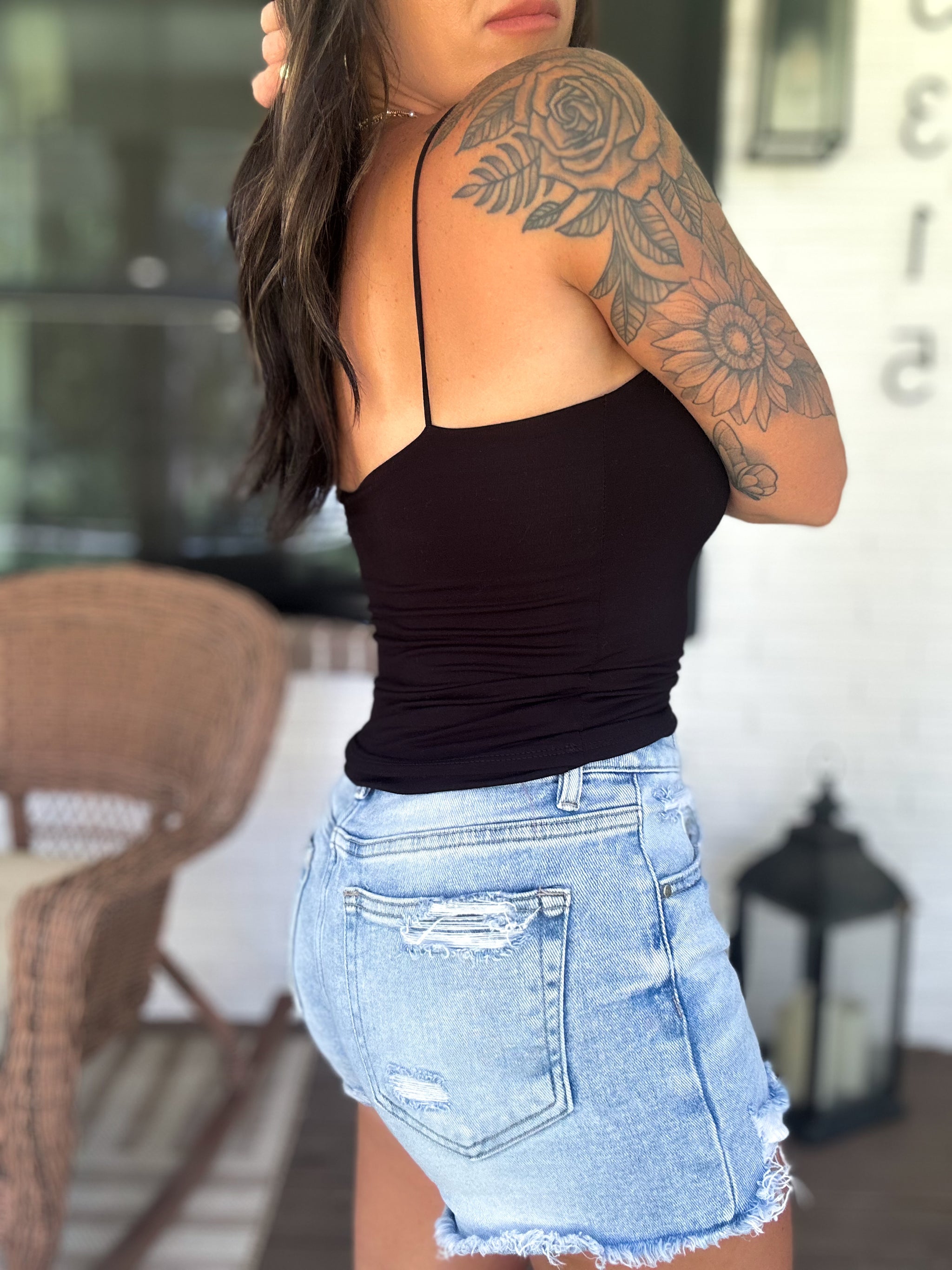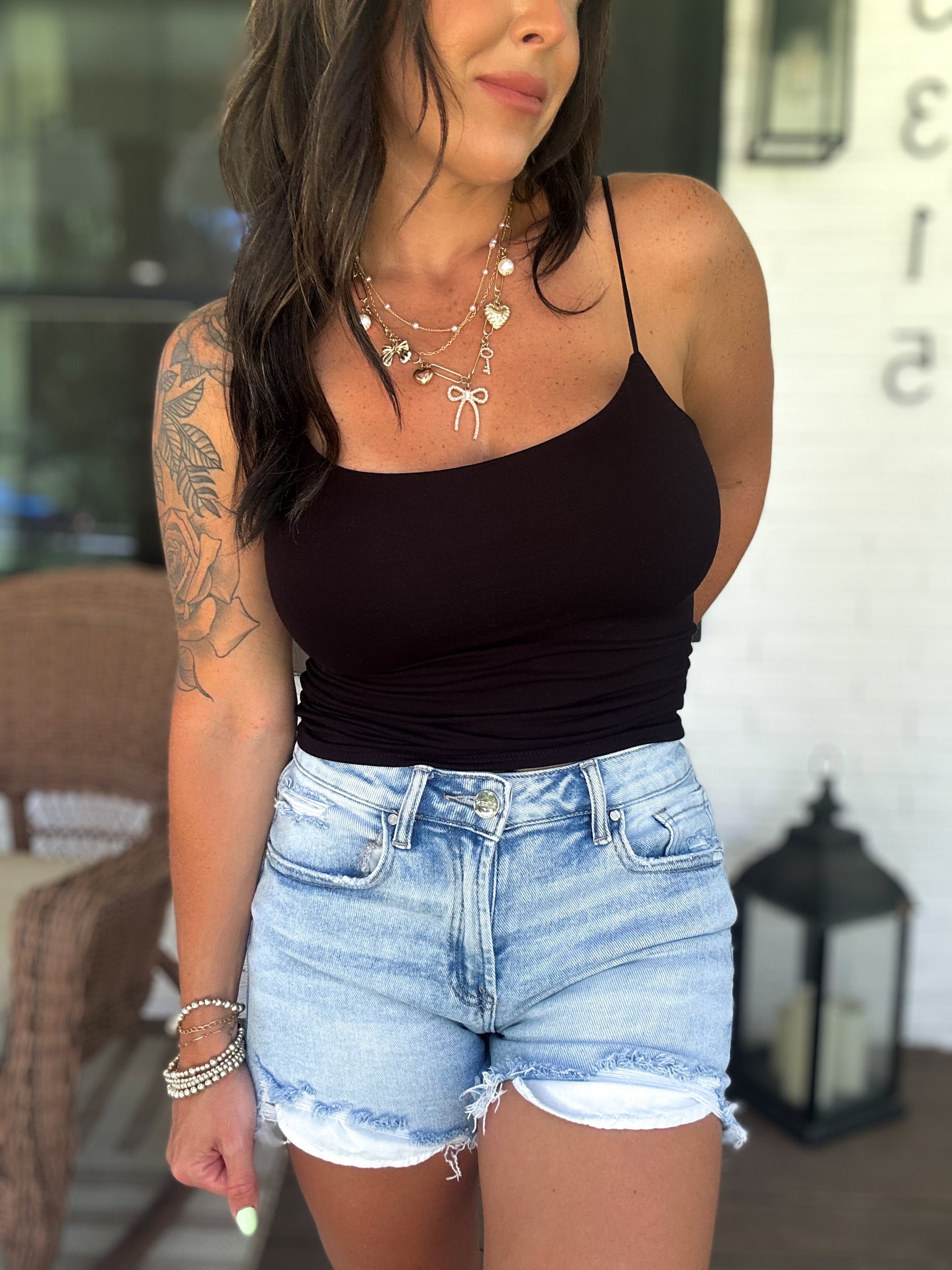 This On My Terms Elastic Strap Tank is your new go-to for effortless style. Featuring a smooth double-lined fabric and delicate thin elastic straps, it feels light and breezy—ideal for layering or wearing solo. Add a pop of playful color to your wardrobe with this easy, breezy tank that moves with you all day long.