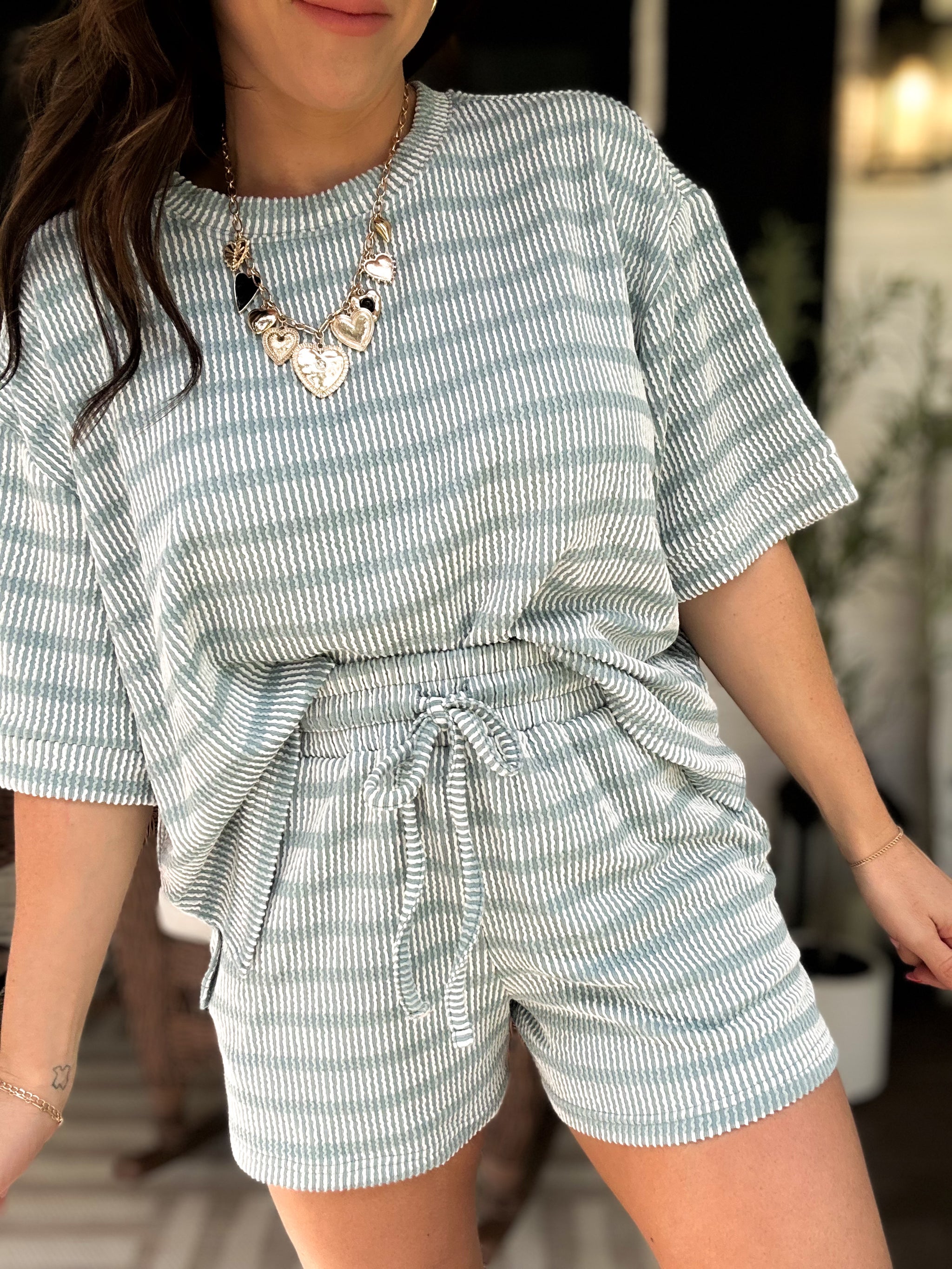 Cozy up in style with our Poppy Rib Knit Striped Set—a perfectly matched tee and shorts combo that's ready for anything. The raised rib knit texture adds visual interest and a touch of sophistication, while the playful stripes keep things fun and fresh. Whether you're lounging at home or stepping out for casual errands, this set delivers comfort without compromising on charm. Mix, match, or wear together for an effortlessly put-together look.