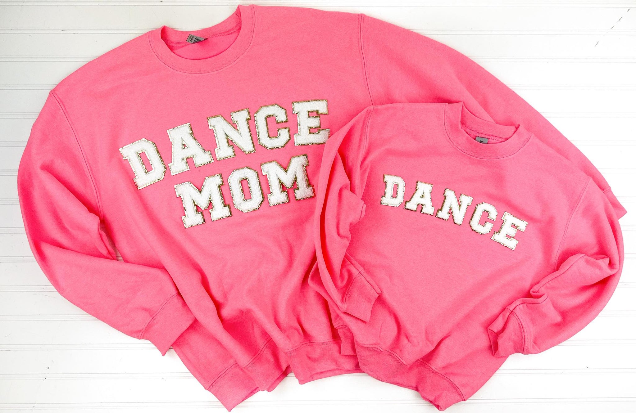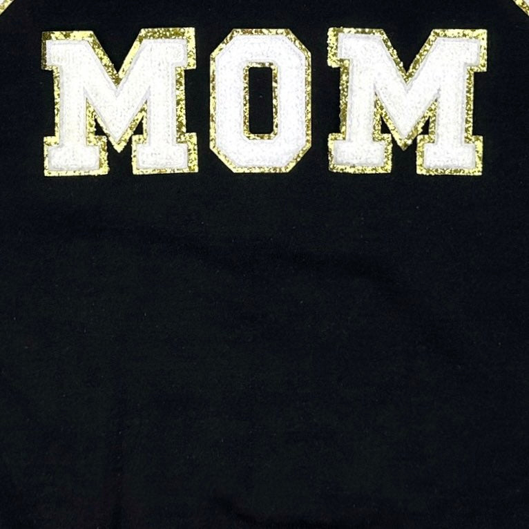 Cheer on your kiddos with the cutest matching patch sweatshirts! Available in black or hot pink sweatshirt with white letters/gold glitter outline.