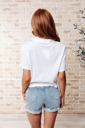– Sold OutElevate your casual look with the Rory Ribbed Cropped Tennis Tee! Made with soft jersey knit and featuring a flattering ribbed texture, this collared shirt has a stylish V-neckline and a cropped design for a modern and sporty vibe. Perfect for any game or training session!