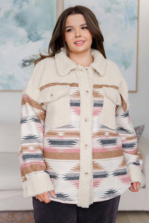 – Sold OutStay cozy and stylish in our Sedona Sunset Shacket. This must-have item features a sherpa fleece panel, classic brushed Aztec patterned woven fabric, and side pockets. Button front closure keeps you snug in the mid to heavy-weight fabric, while the pockets provide convenience. Make a statement with our Sedona Sunset Shacket!