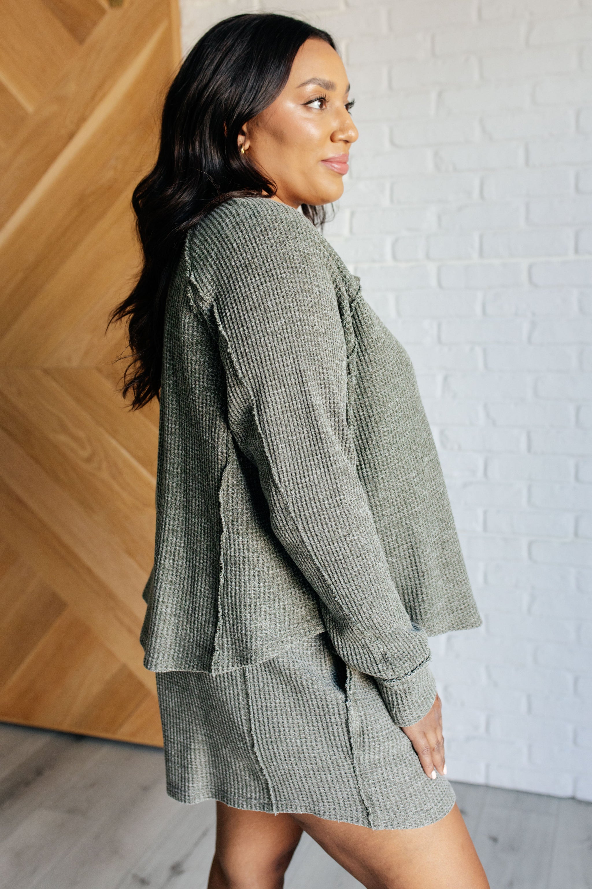 – Sold OutUpgrade your loungewear with our Set Process Mineral Wash Waffle Knit Set. Made with waffle knit fabric for ultimate comfort, this set features a pullover with a unique henley-style neckline and shorts with functional side pockets and an elastic waistline for the perfect fit. The raw edge details add a touch of edginess.