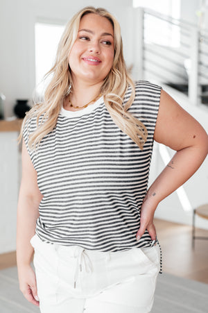– Sold OutGet ready to add some playful stripes to your wardrobe with our What's Going On sleeveless top! Made from high stretch French Terry, this top features a round neckline, cap sleeves, a side slit, and a stepped hem for a fun and unique look. Perfect for any casual occasion, this top will keep you feeling comfortable and stylish all day long. (Terry-fic, right?!)