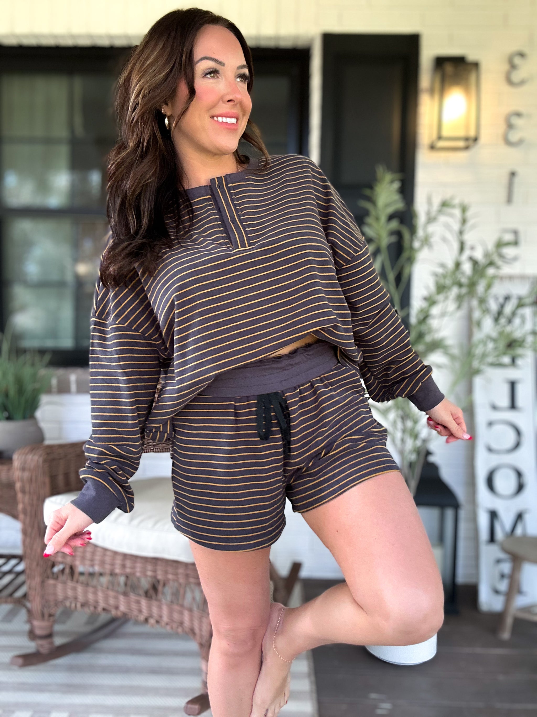 Cozy up in our Whitney Pin Stripe Knit Pullover—a soft brushed knit that feels as good as it looks. Classic pin stripes add timeless style while the relaxed pullover silhouette keeps things effortlessly chic. Perfect for layering or wearing solo, this wardrobe staple transitions seamlessly from casual coffee runs to weekend hangouts. Snuggle into comfort without sacrificing style.