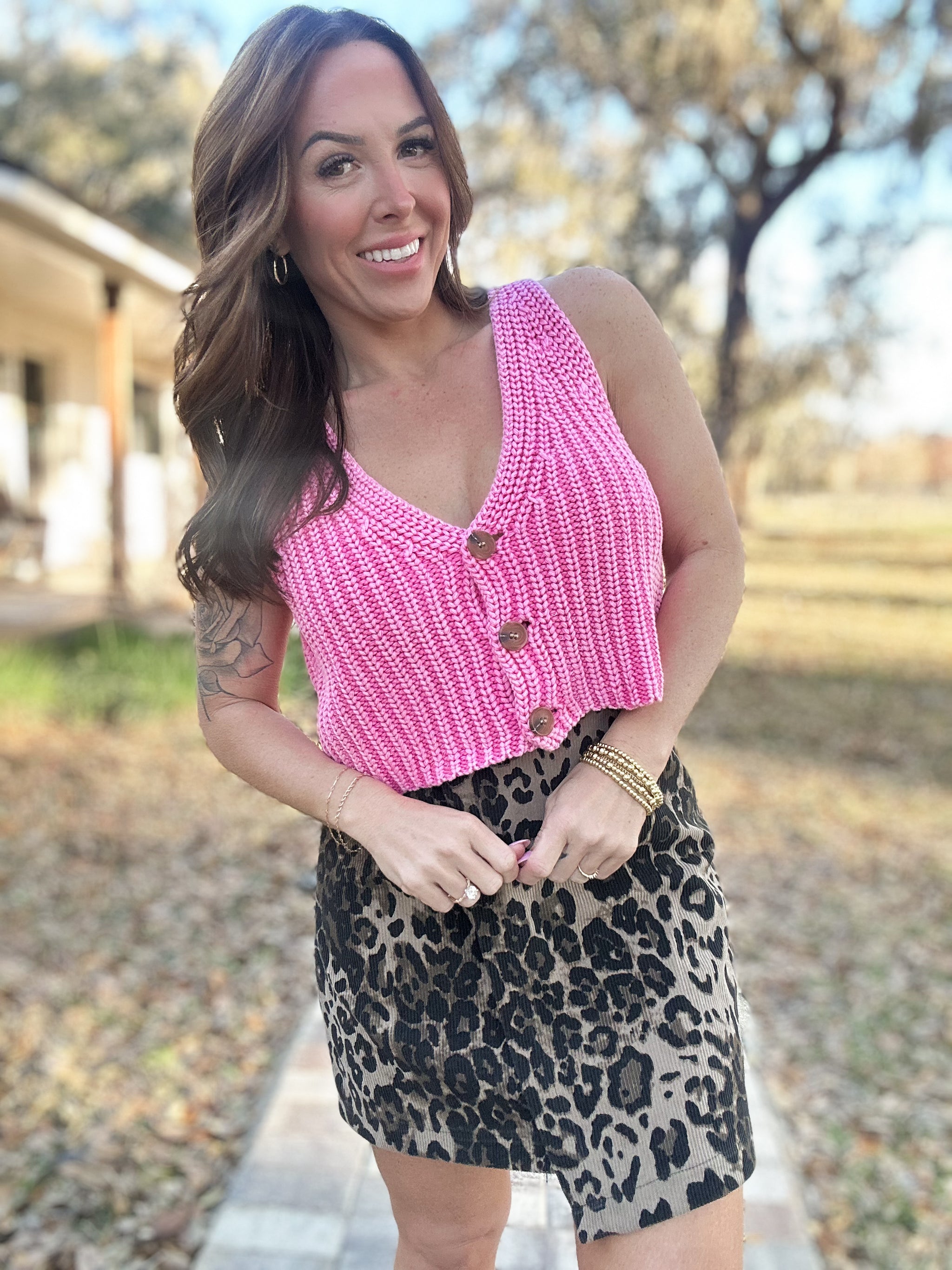 Effortless layering meets timeless style with the Willow Sleeveless Sweater Top. This versatile piece features a classic button-down front and cozy knit construction, making it perfect for throwing over your favorite tee or wearing solo. The sleeveless design keeps things breezy while the structured fit flatters every frame. Dress it up with tailored trousers or keep it casual with denim—this wardrobe essential works harder than you'd think.