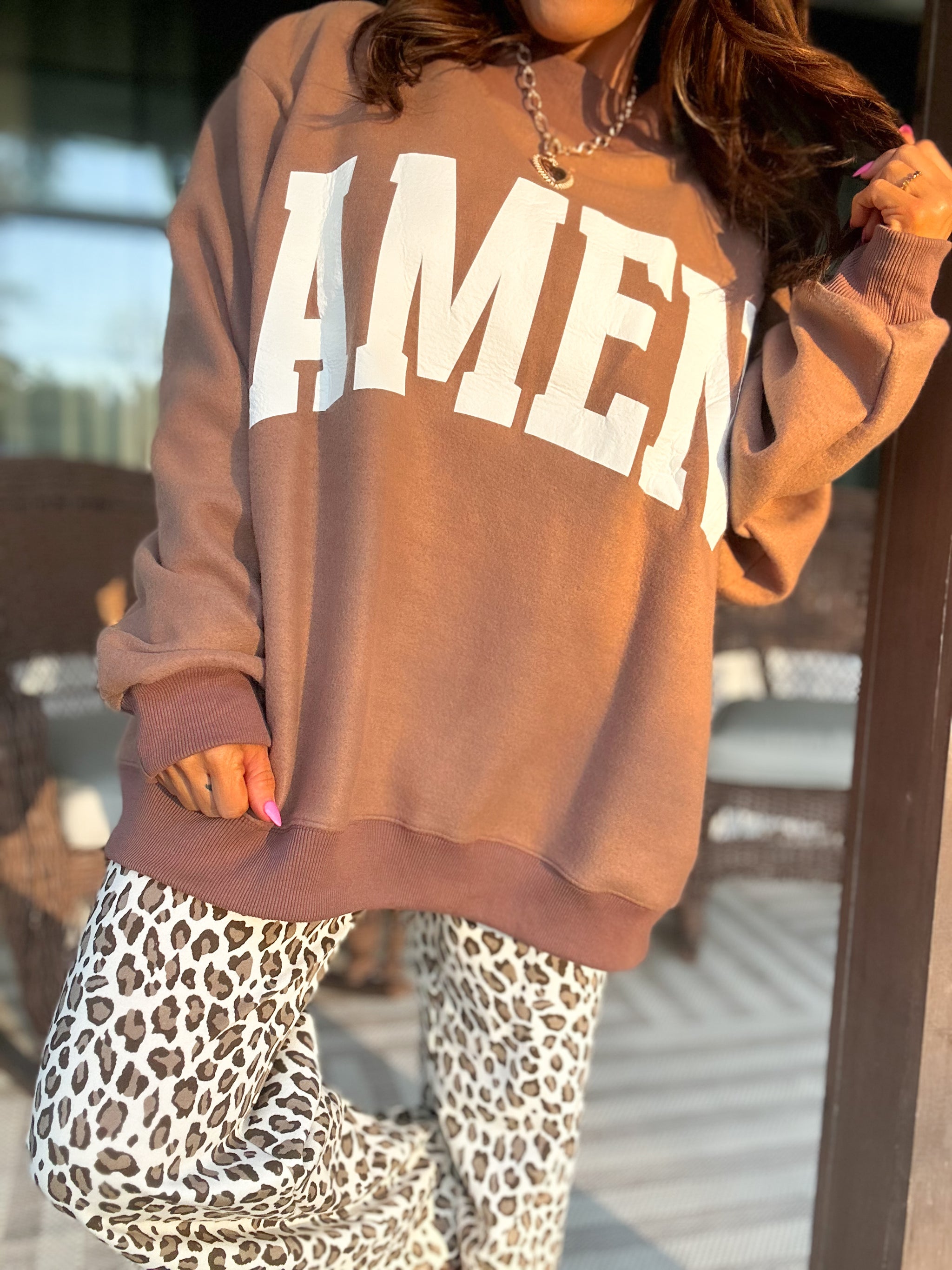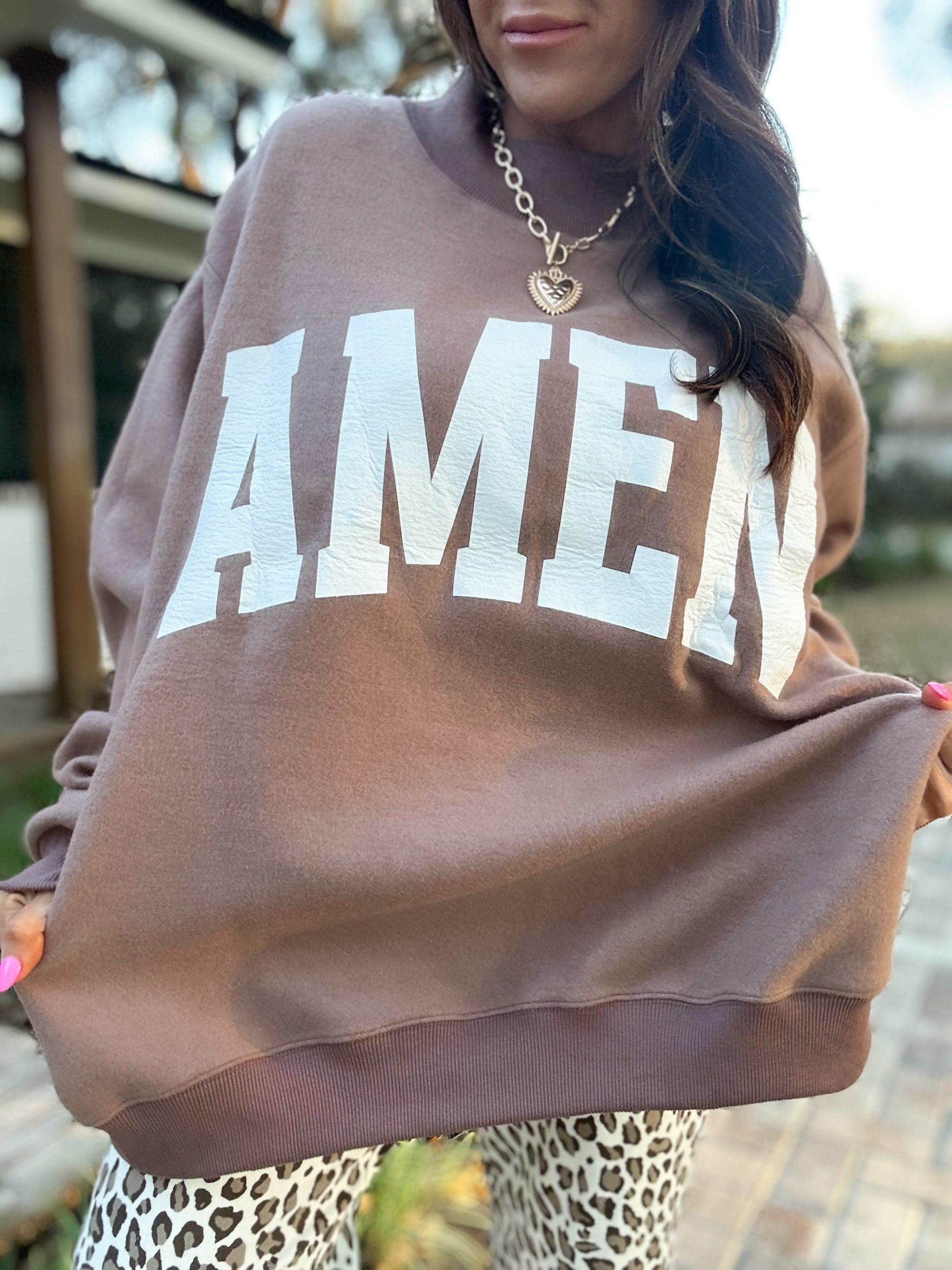 Flip your faith with this reversible mock neck that lets you switch between two bold statements—WWJD on one side, Amen on the other. Perfect for expressing your spiritual side with a fun twist, whether you're heading to church, brunch, or just living your best life. The mock neck keeps things cozy while the reversible design means double the style in one piece. Show your beliefs your way, every single day.