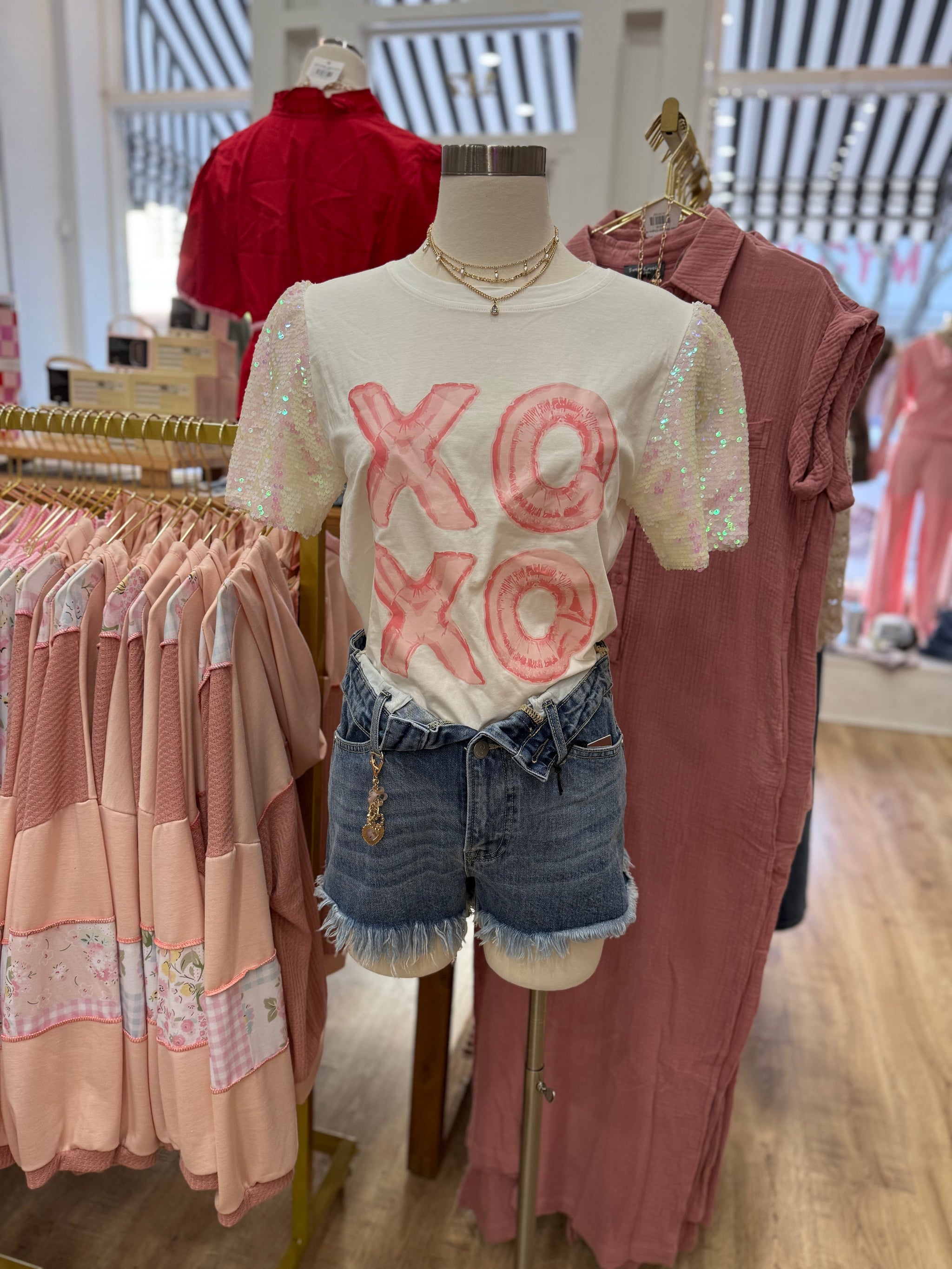 Spread some love with our XOXO Sequin Sleeve Top! Its playful balloon design on a sequin puff sleeve adds a touch of fun to any outfit. Show off your unique style with this quirky top!